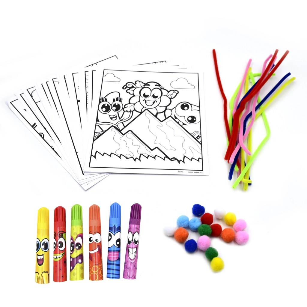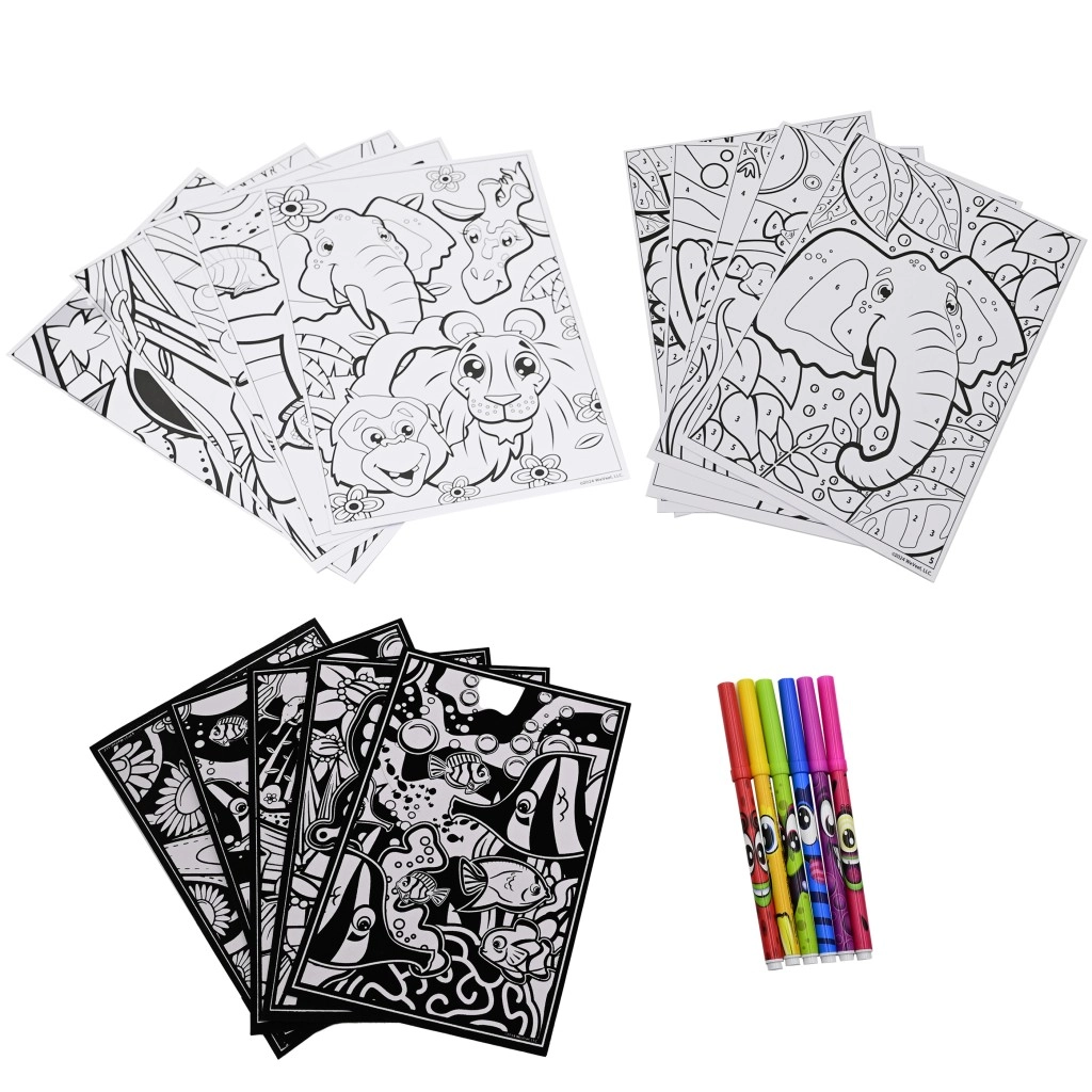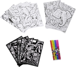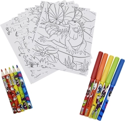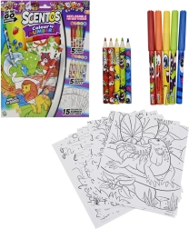 Setul include cărți de colorat cu animale, carioci parfumate și creioane – ideal pentru colorat rapid și plin de culoare acasă sau în călătorii.