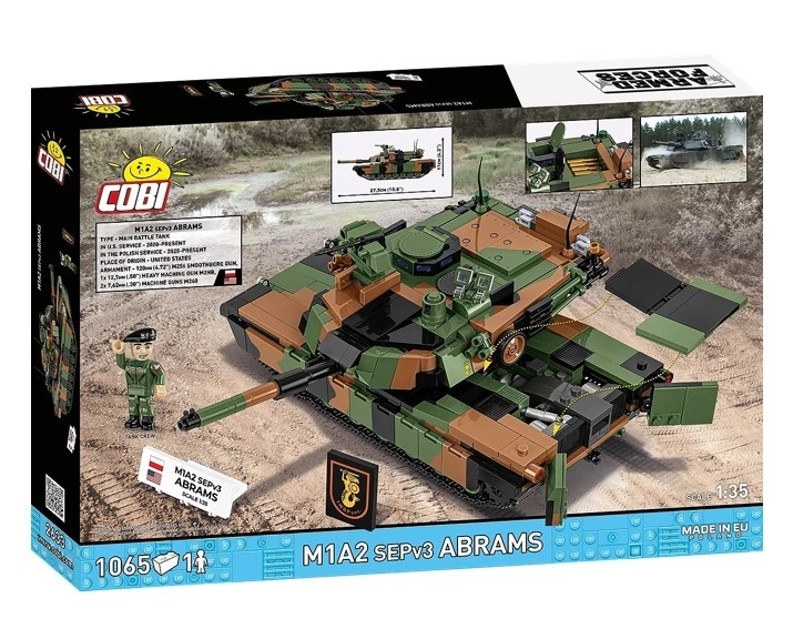 Intră în lumea tehnicii moderne cu setul de construcție al tancului M1A2 SEPv3 Abrams inspirat de culorile poloneze ale Brigăzii 1 Tancuri Varșovia. Modelul detaliat la scară 1:35 reproduce fidel silueta și echiparea legendarului tanc american, iar datorită șenilelor realiste, turelei rotative și elementelor care se deschid este ideal atât pentru expunere, cât și pentru joacă plină de acțiune.