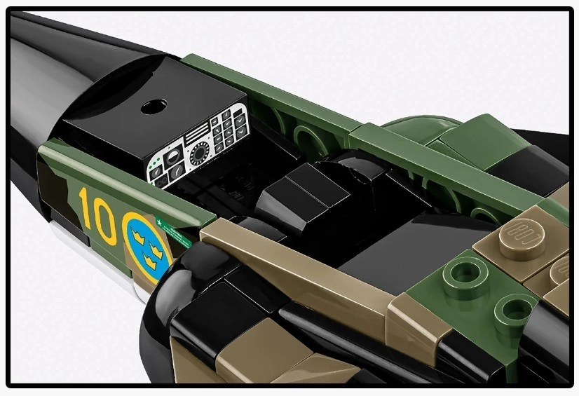 Datorită suprafețelor de comandă mobile, roților pivotante și echipării bogate – inclusiv containere pentru muniție cu submuniții de tip Bombkapsel 90 – modelul este excelent atât pentru joacă, cât și pentru expunere. Include figurină pilot modificată și suport stabil, reglabil cu plăcuță cu nume, scară și steagul Suediei.
