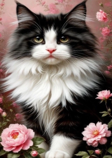 Pictura cu diamante este o modalitate excelentă de a vă destinde și, în același timp, de a crea o decorațiune elegantă pentru casă. Motivul pisicii alb-negru se potrivește în orice interior, iar datorită legendei clare și pânzei pretipărite, lipirea pietricelelor este simplă și plăcută.