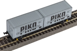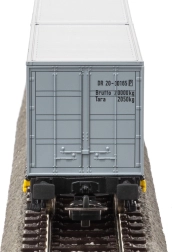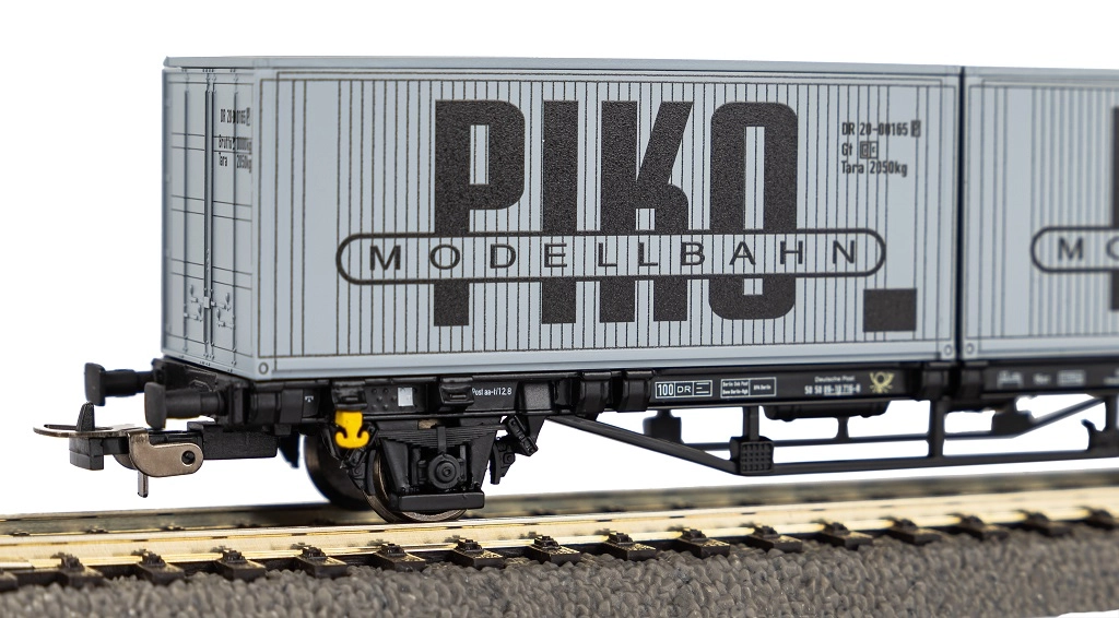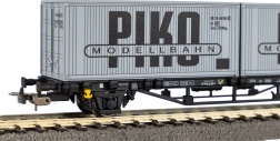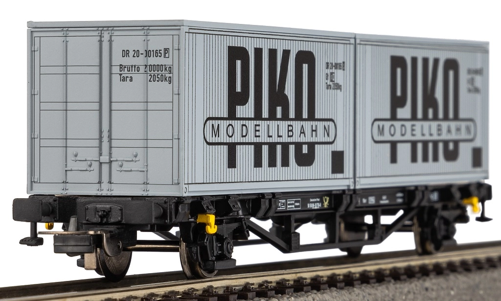Vagonul containerizat cu inscripția „VEB PIKO” redă fidel un vagon Deutsche Reichsbahn din epoca IV (cca 1970–1990). Datorită inscripționării precise, detaliilor clare ale șasiului și boghiurilor și graficei autentice, este o alegere excelentă pentru colecționari și modelişti activi. Sunt incluse deja 2× containere de 20', care conferă ramei dvs. de marfă un caracter realist.
