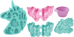 Forme, instrument în formă de stea, recipient și figurină unicorn permit presarea, decuparea și decorarea – doar deschizi și te joci.