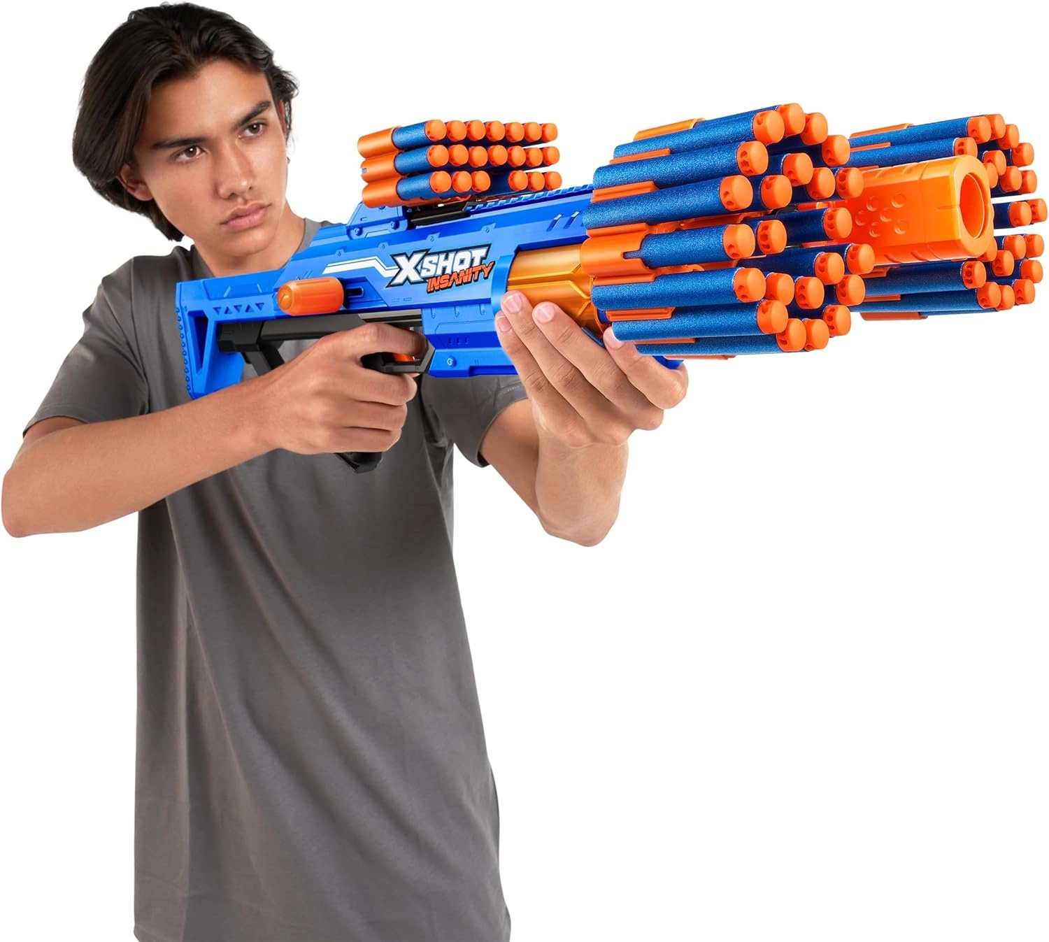 Blasterul X-Shot Insanity Berzerko este proiectat pentru un ritm maxim al jocului, atât în interior, cât și în aer liber. Datorită mecanismului de pompare și încărcătorului tambur, poți trage până la 8 focuri în succesiune rapidă, în timp ce tehnologia Air Pocket a săgeților originale X-Shot îmbunătățește raza, stabilitatea și precizia.