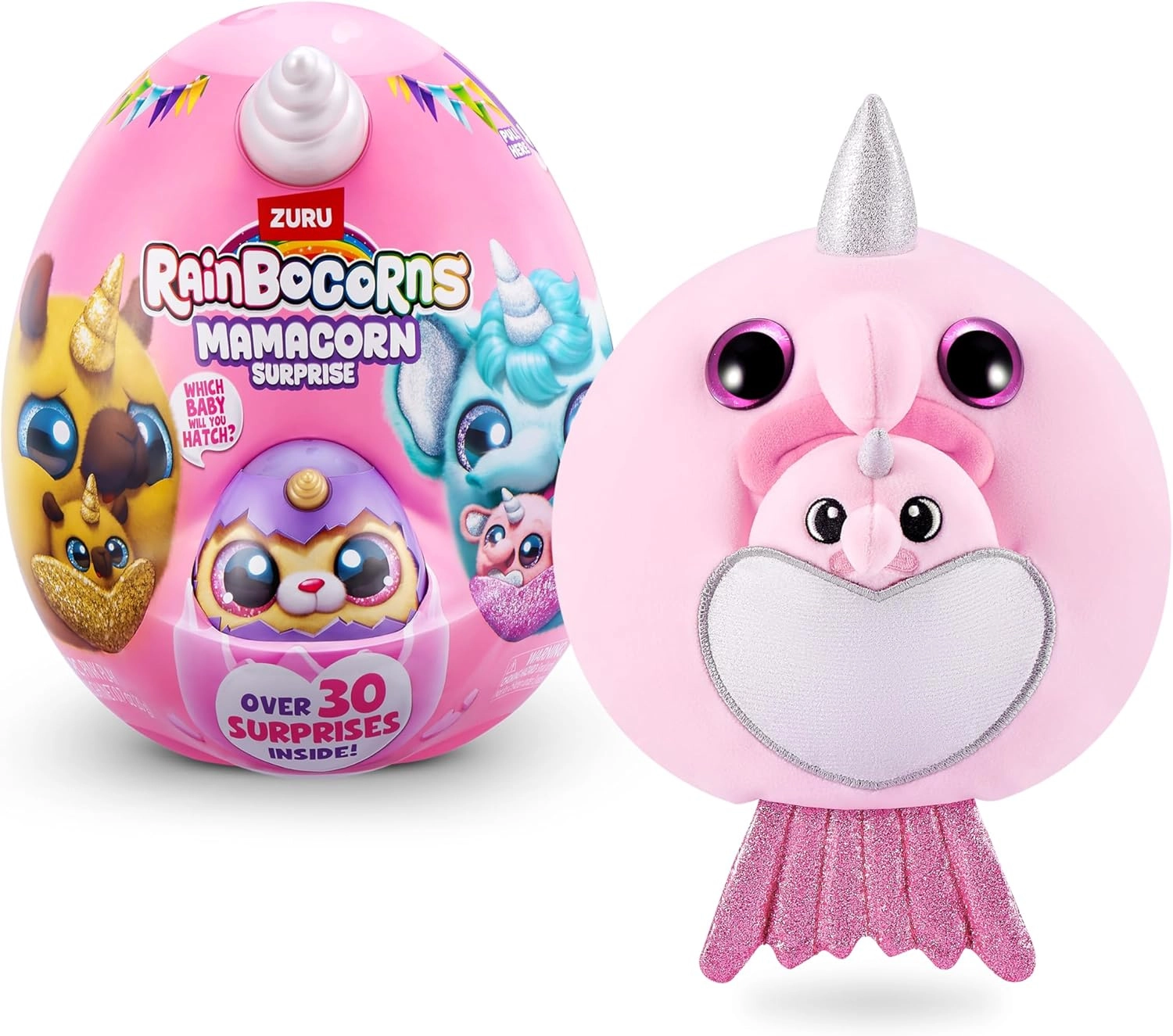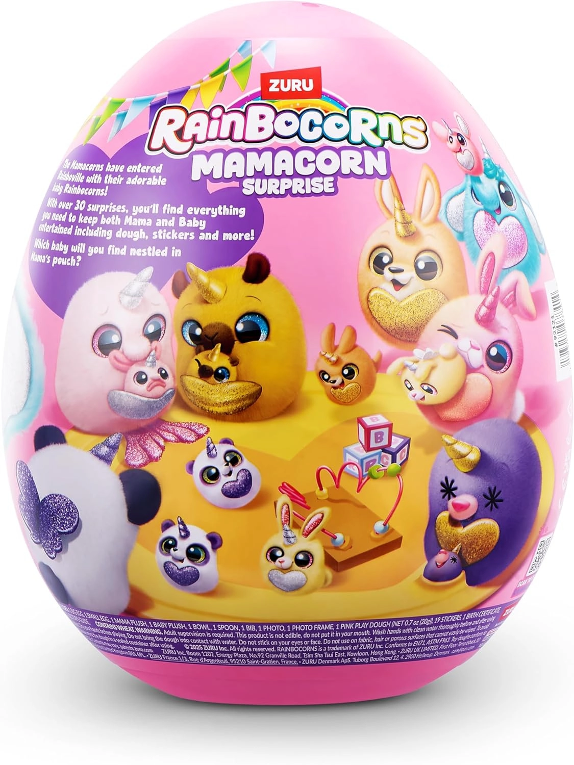 Descoperă lumea magică RAINBOCORNS MAMACORN SURPRISE – un ou mare roz în care te așteaptă mămica Mamacorn cu bebelușul ei și peste 30 de surprize. Un pluș moale, fin și de colecție, cu inimă magică pe burtică, care aduce ore întregi de distracție creativă și plină de emoție. Ideal ca cadou pentru copiii de la 3 ani.