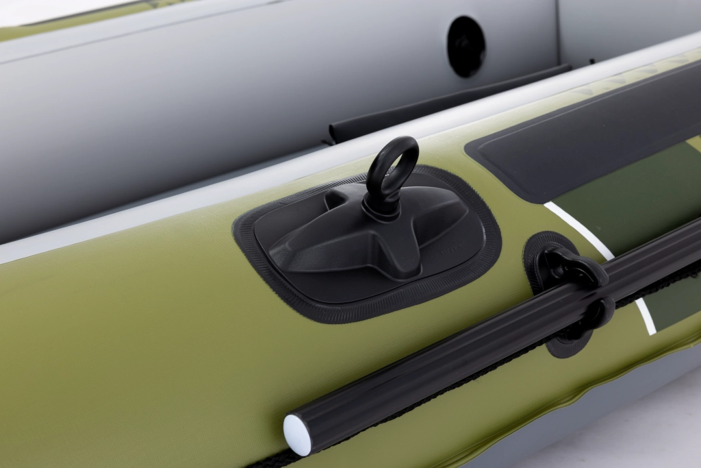 Pentru manipulare ușoară, barca este echipată cu frânghie perimetrală și mâner sudat în prova. Umflarea și dezumflarea rapide sunt asigurate de valvele Boston. Echiparea practică este completată de blocaje rotative pentru vâsle, suporturi pentru undițe de pescuit, buzunar/c husă interioară pentru mărunțișuri și puncte de montaj pentru motor suplimentar.