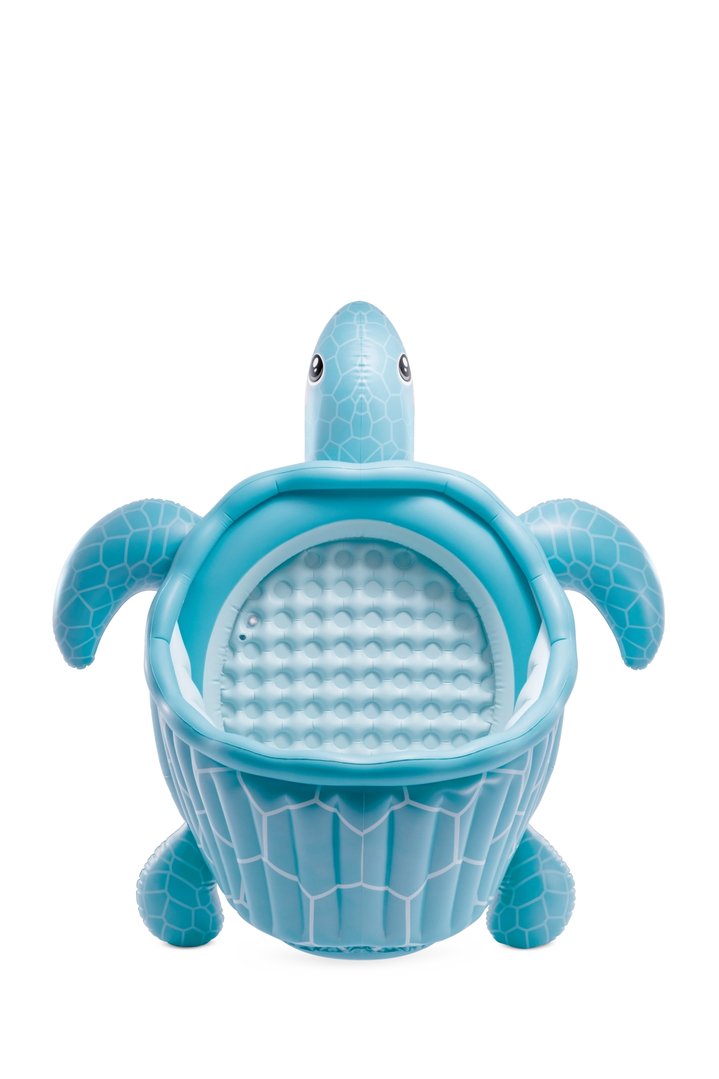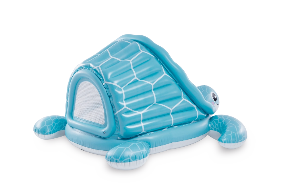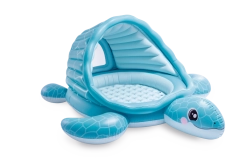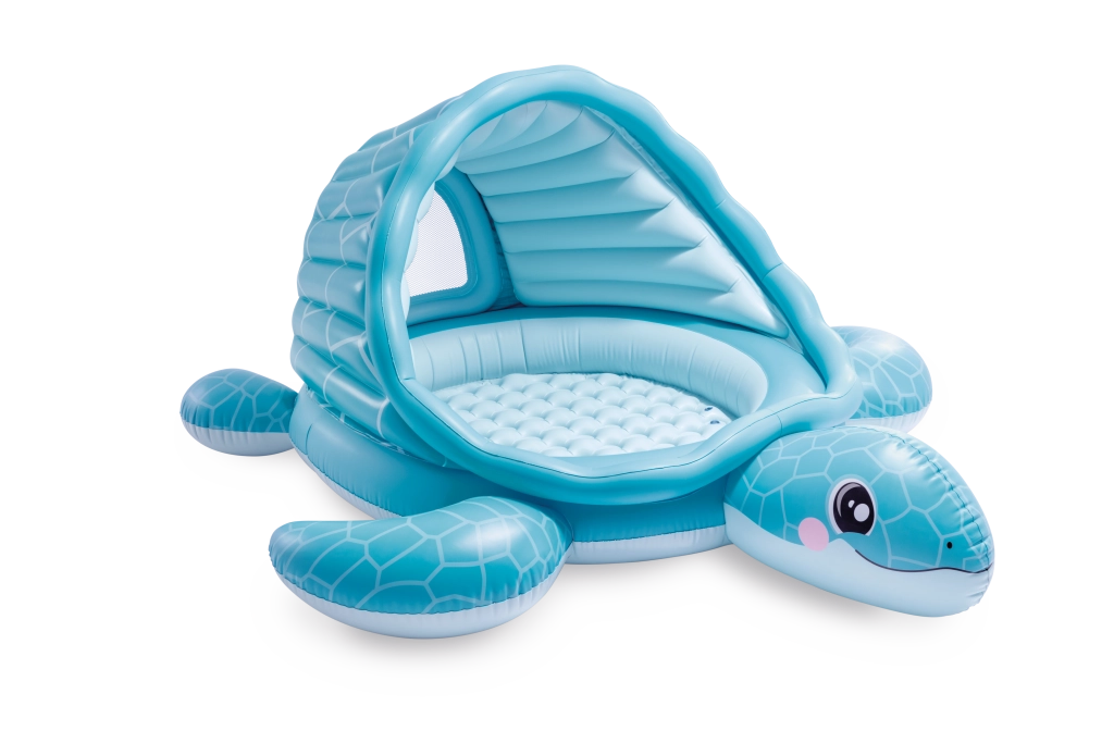 Piscina gonflabilă pentru copii cu baldachin Golfulețul Țestoasei îmbină designul jucăuș cu funcții practice. Nuanța albastru deschis cu motiv de carapace și fața veselă a țestoasei atrag din prima clipă, în timp ce fundul gonflabil moale asigură confort și amortizarea șocurilor pe suprafețe dure.