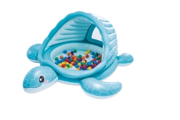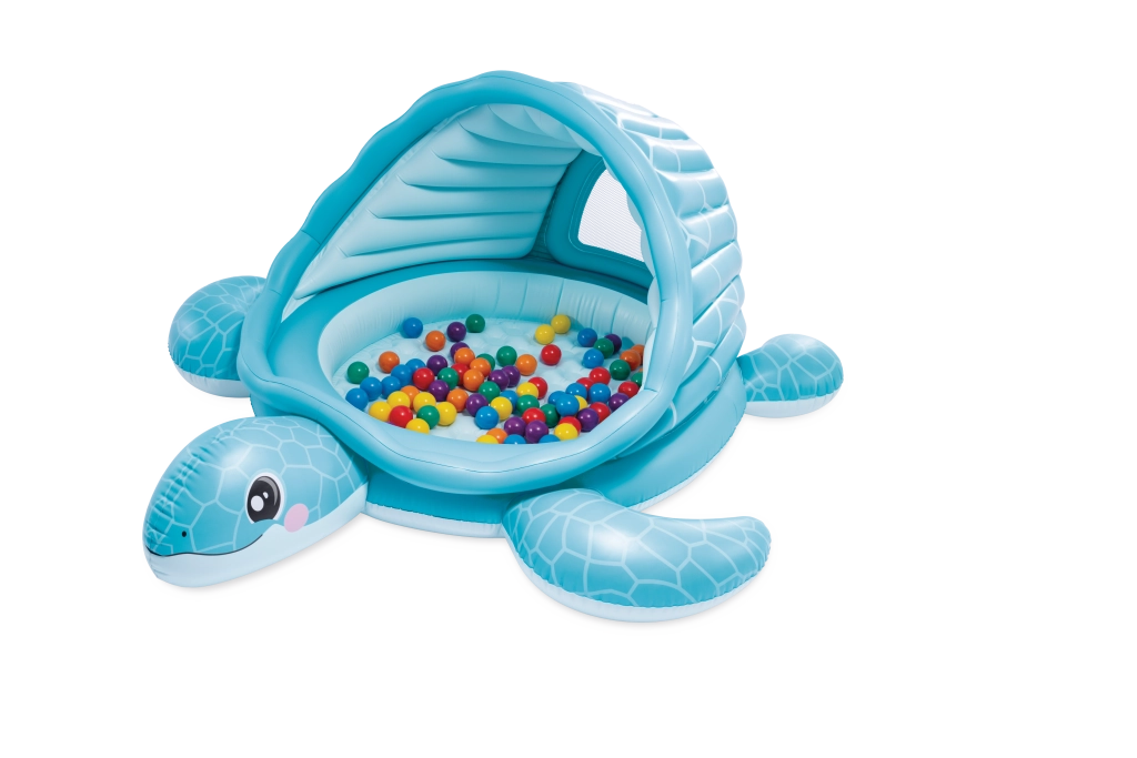 Piscină gonflabilă adorabilă în formă de țestoasă, cu baldachin practic, oferă copiilor un loc sigur și confortabil pentru joaca de vară. Are fund gonflabil moale pentru confort, baldachin de umbrire cu ferestre din plasă pentru ventilație și supraveghere și poate fi folosită și ca piscină cu bile. Materialul PVC durabil și umflarea și golirea ușoară o fac un accesoriu ideal pentru grădină sau terasă.