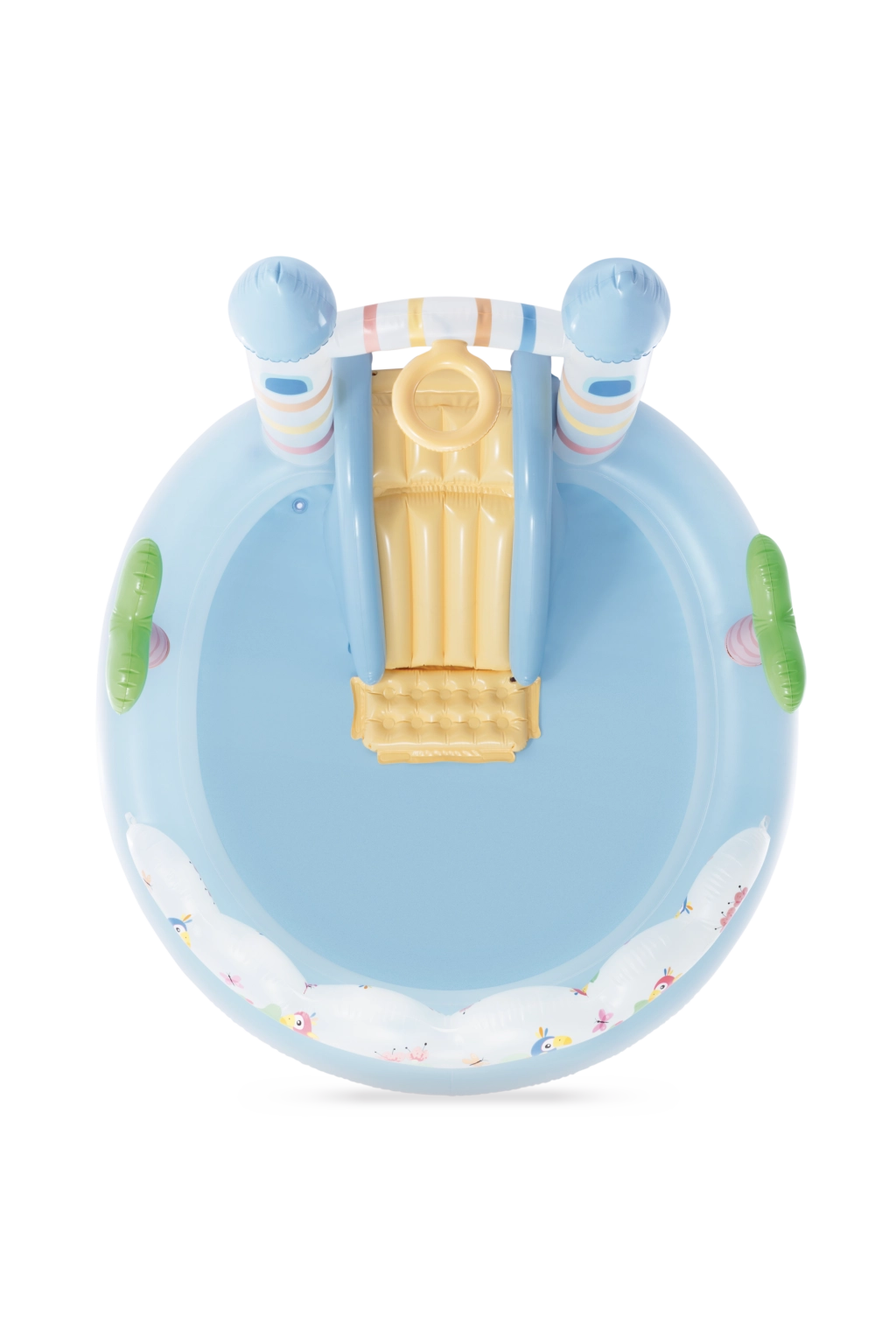 - rezervor albastru deschis, tobogan galben, decorațiuni colorate