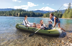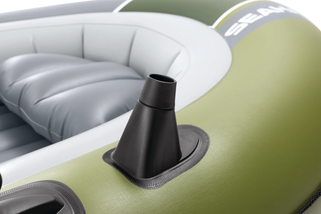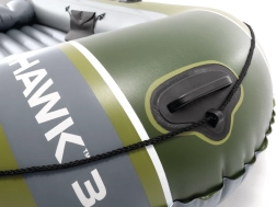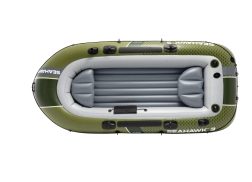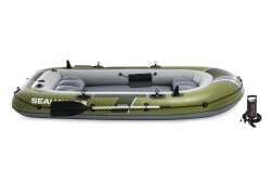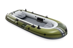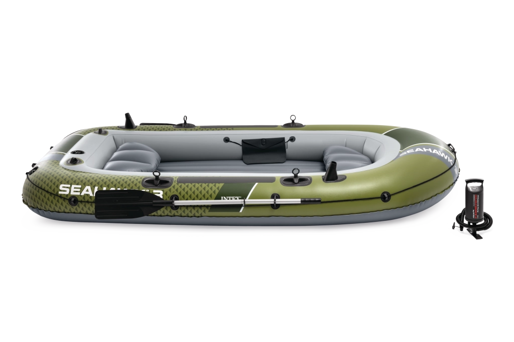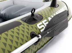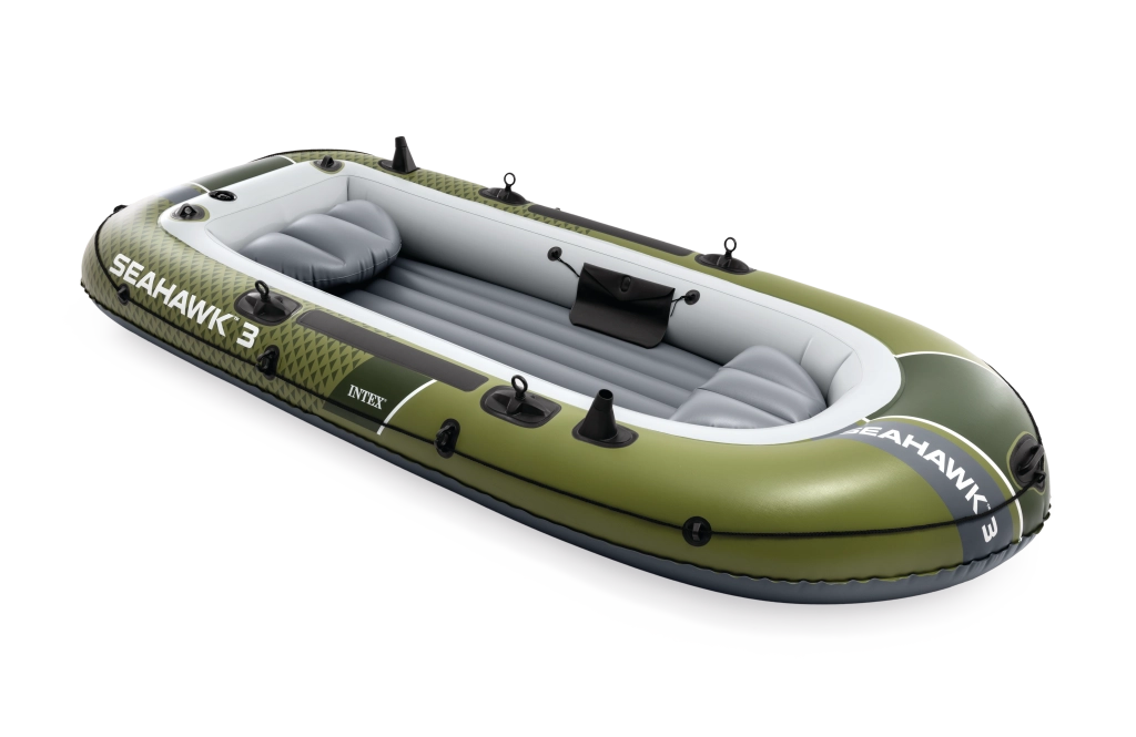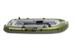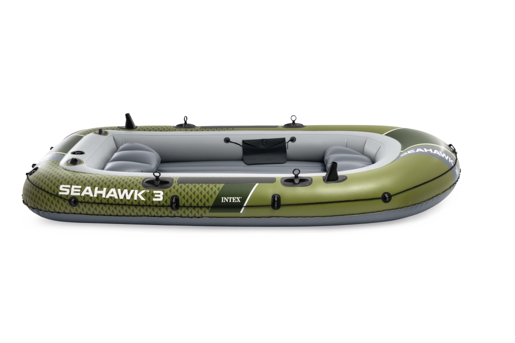 Modelul INTEX Seahawk 3 este o barcă gonflabilă versatilă pentru recreere, pescuit și plimbări liniștite pe lacuri și râuri. Datorită celor trei camere de aer, inclusiv unei camere auxiliare în interiorul corpului, și vinilului rezistent, face față condițiilor mai solicitante și oferă siguranță pe apă. Podeaua gonflabilă cu grindă în I mărește rigiditatea și confortul echipajului.