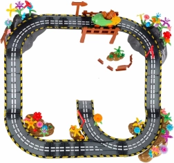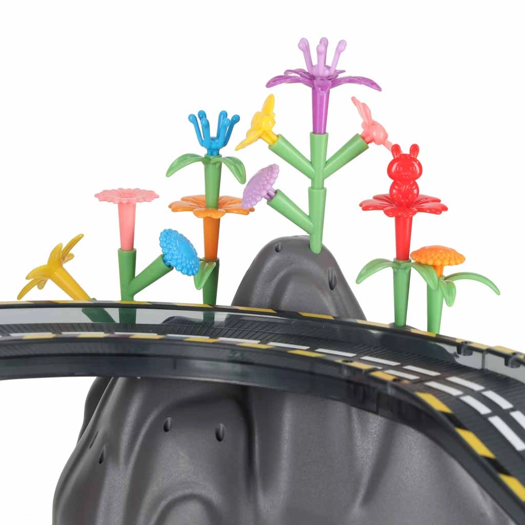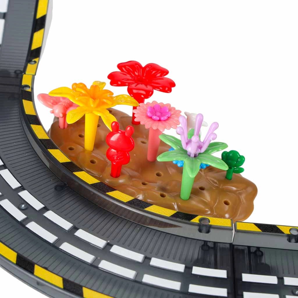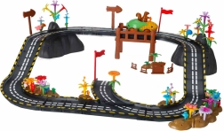 Este o jucărie educativă care dezvoltă natural creativitatea, gândirea logică și abilitatea de planificare. Fiecare nouă configurație este o poveste diferită – copiii pot adăuga flori, copaci, garduri, stânci și stegulețe și pot crea medii originale pentru curse.
