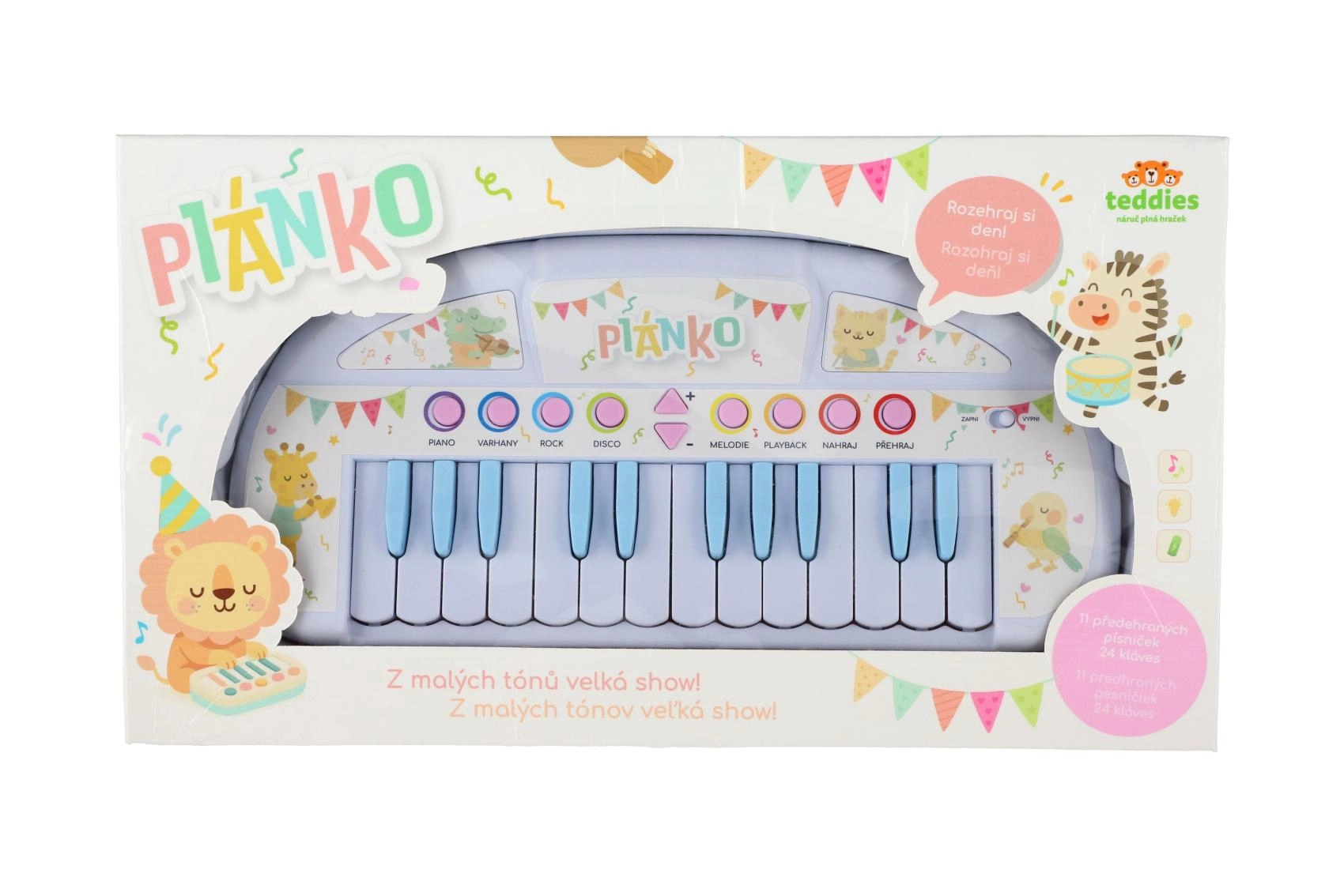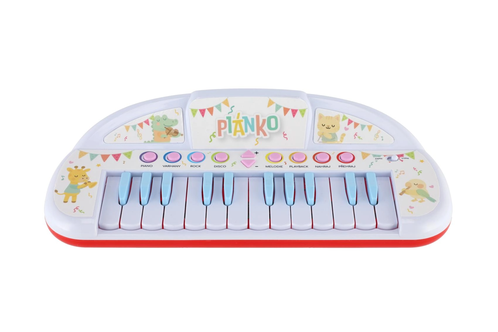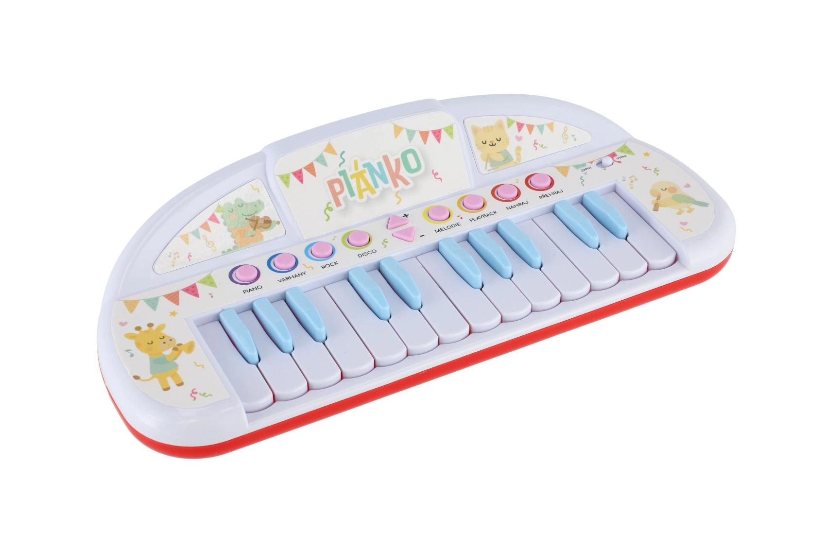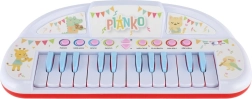 Descoperiți lumea muzicii cu pianul pentru copii cu animăluțe, lungime 35 cm. Datorită butoanelor intuitive, clapelor și sunetelor amuzante de animăluțe, precum și melodiilor, copiii învață rapid bazele ritmului și își exersează motricitatea fină. Jucăria este ușoară, rezistentă și sigură pentru joaca de zi cu zi.