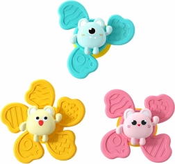 Spinnerele se fixează cu ventuza puternică pe orice suprafață netedă. Captează atenția la masă, în călătorii și la baie și se curăță ușor cu apă și săpun. Construcția ușoară și funcționarea silențioasă asigură o joacă plăcută și liniștită.