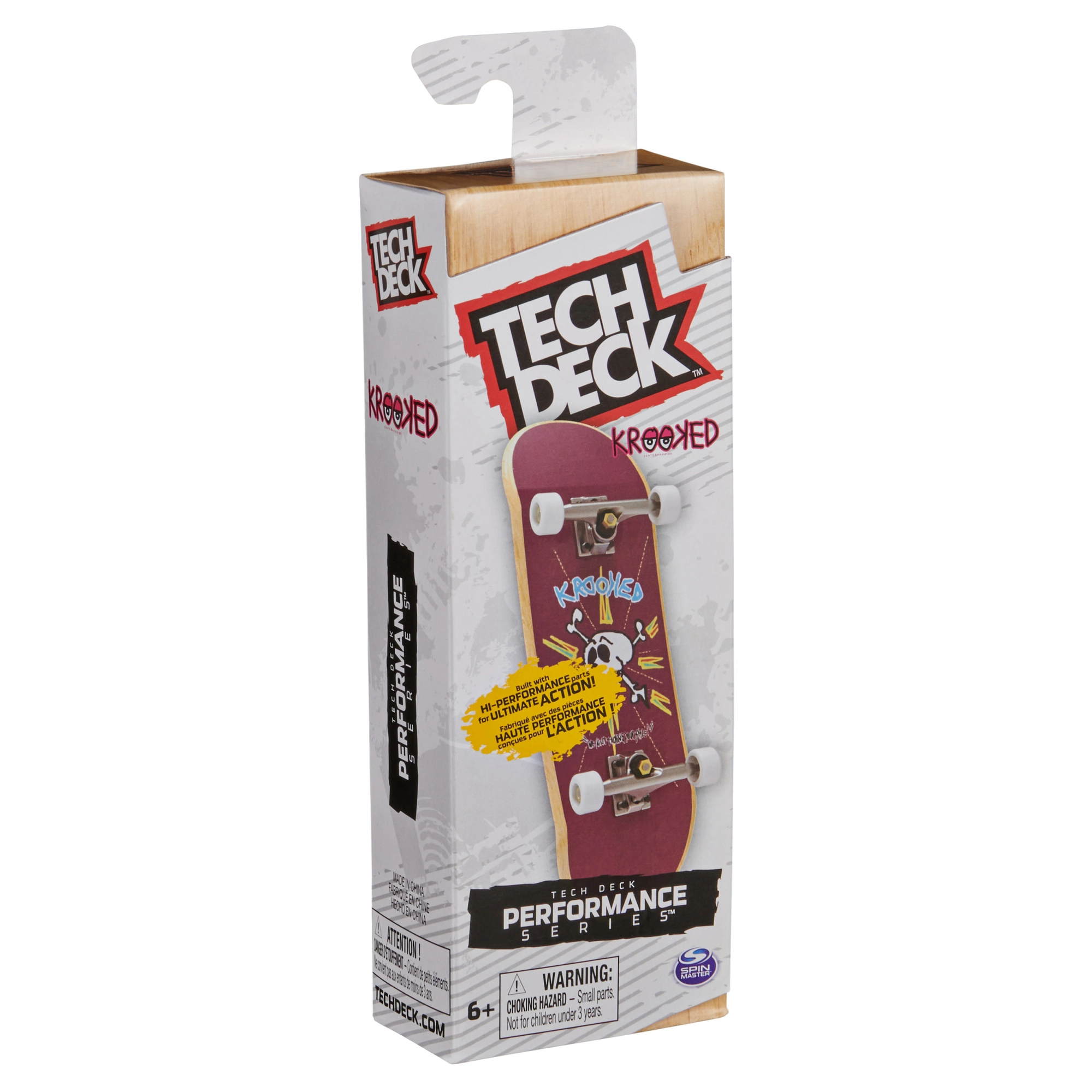 Descoperă fingerboardul realist din gama Performance de la Tech Deck cu grafică KROOKED. Placa din lemn, grip din spumă, bushinguri din cauciuc și roți mai moi, aderente asigură control mai bun, precizie și o senzație de rulare ca pe un skateboard real – ideal pentru învățarea și executarea trucurilor cu degetele acasă sau în deplasare.