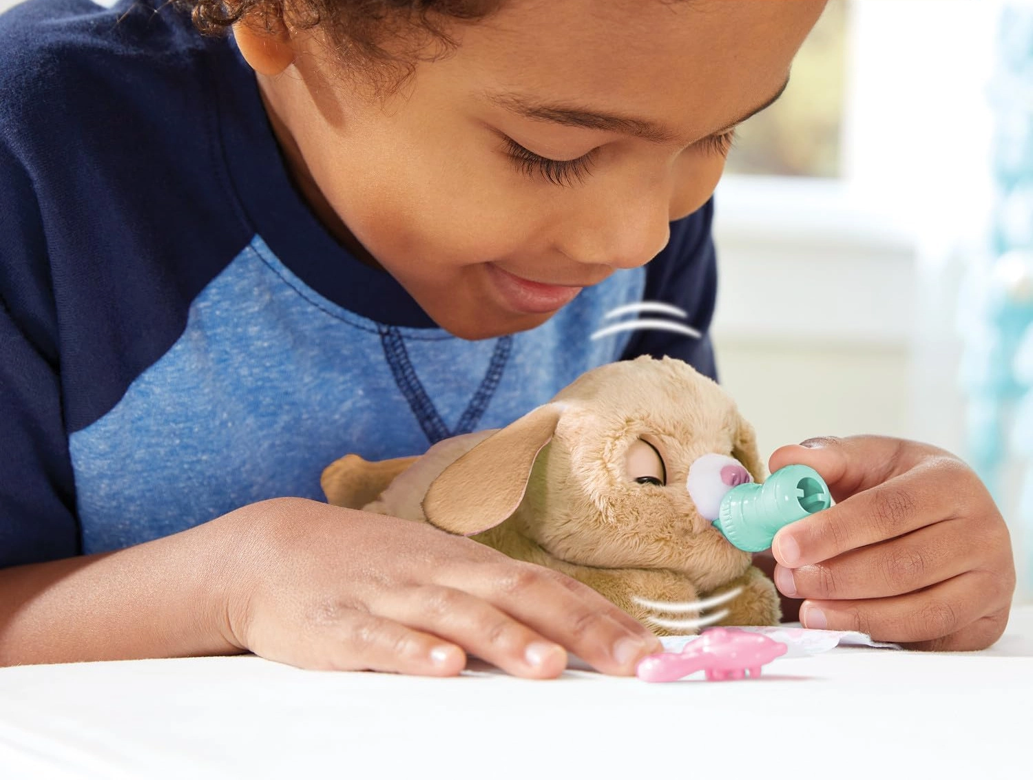Copiii pot hrăni cu biberonul cățelușul, îi pot oferi suzița, îl pot pieptăna cu peria și îl pot înveli cu păturica călduroasă. La mângâiere, cățelușul torce și scoate sunete de mulțumire, iar după îngrijire închide ochii, ca și cum ar adormi. Dimensiunea compactă este perfectă pentru călătorii și pentru pătuț.