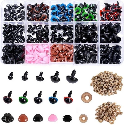 Acest set universal conține o combinație de ochi, nasuri și șeițe de fixare, datorită cărora atașați ușor și sigur piesele de material textil sau tricotaje. Ideal pentru mascote, jucării, păpuși și alte proiecte DIY. Totul este depozitat ordonat într-o cutie practică din plastic, care simplifică stocarea și sortarea.