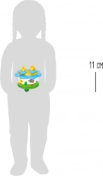 Cutie muzicală care aduce bucurie și distracție în fiecare cameră de copil. Două rățuște mici, fixate cu ajutorul magneților, se rotesc elegant și pot fi despărțite și folosite pentru joacă individuală. Acest mic dispozitiv muzical nu numai că dezvoltă imaginația copiilor, ci și le susține motricitatea fină.