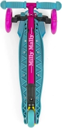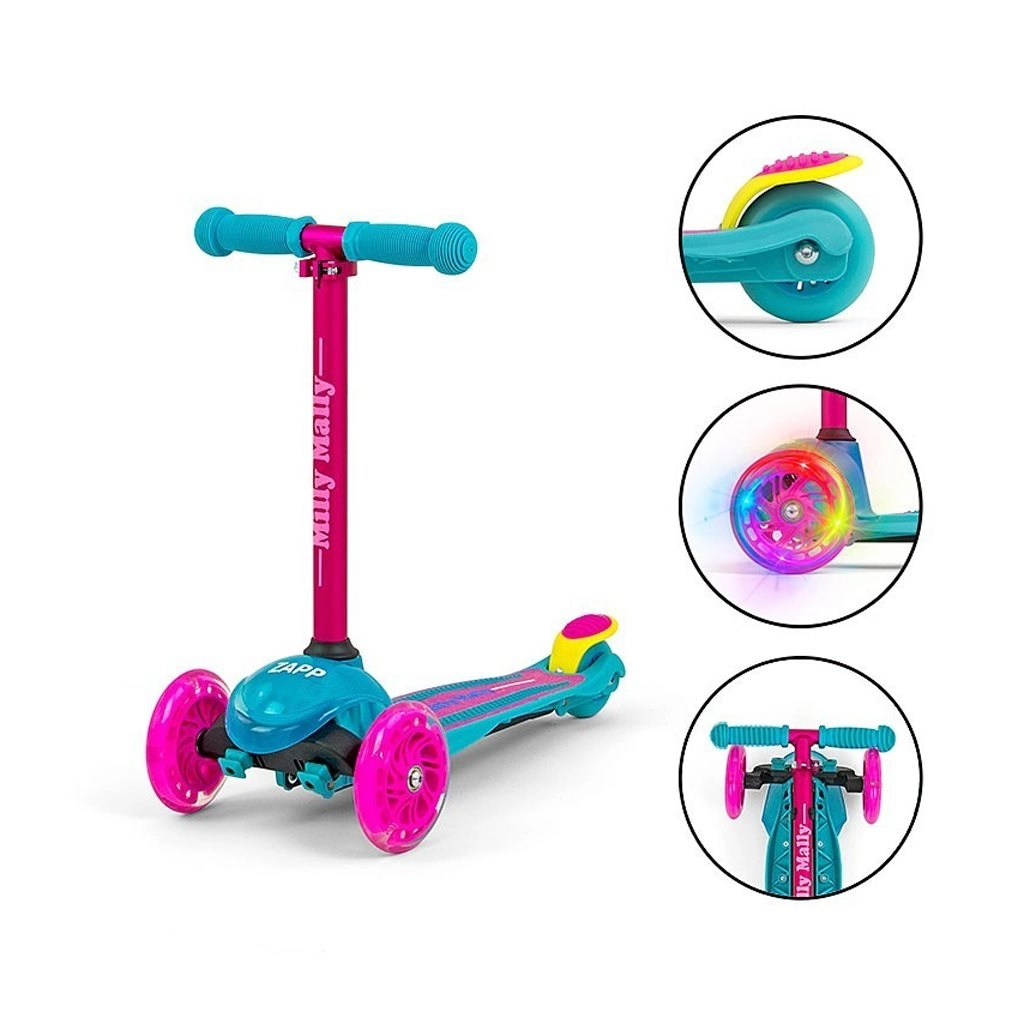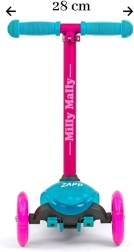 Căutați prima trotinetă care să sprijine echilibrul și încrederea celor mici? Modelul MILLY MALLY Zapp cu trei roți oferă stabilitate excelentă și siguranță. Direcția se face prin înclinarea corpului, astfel încât copiii învață în mod natural să își mențină echilibrul și își dezvoltă motricitatea. Roțile din față se aprind în timpul mersului, ceea ce crește vizibilitatea și distracția în fiecare plimbare.