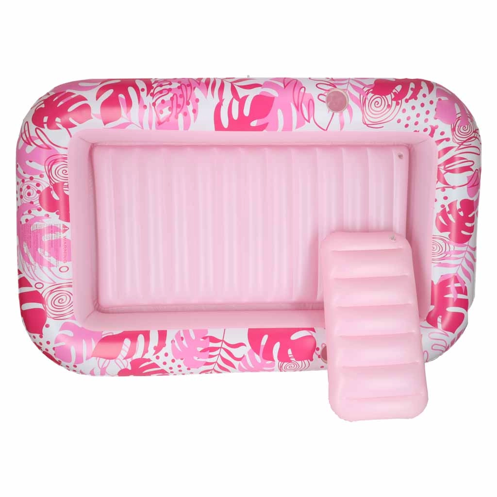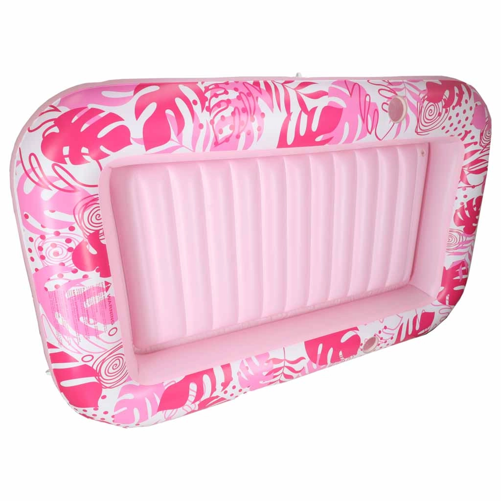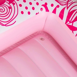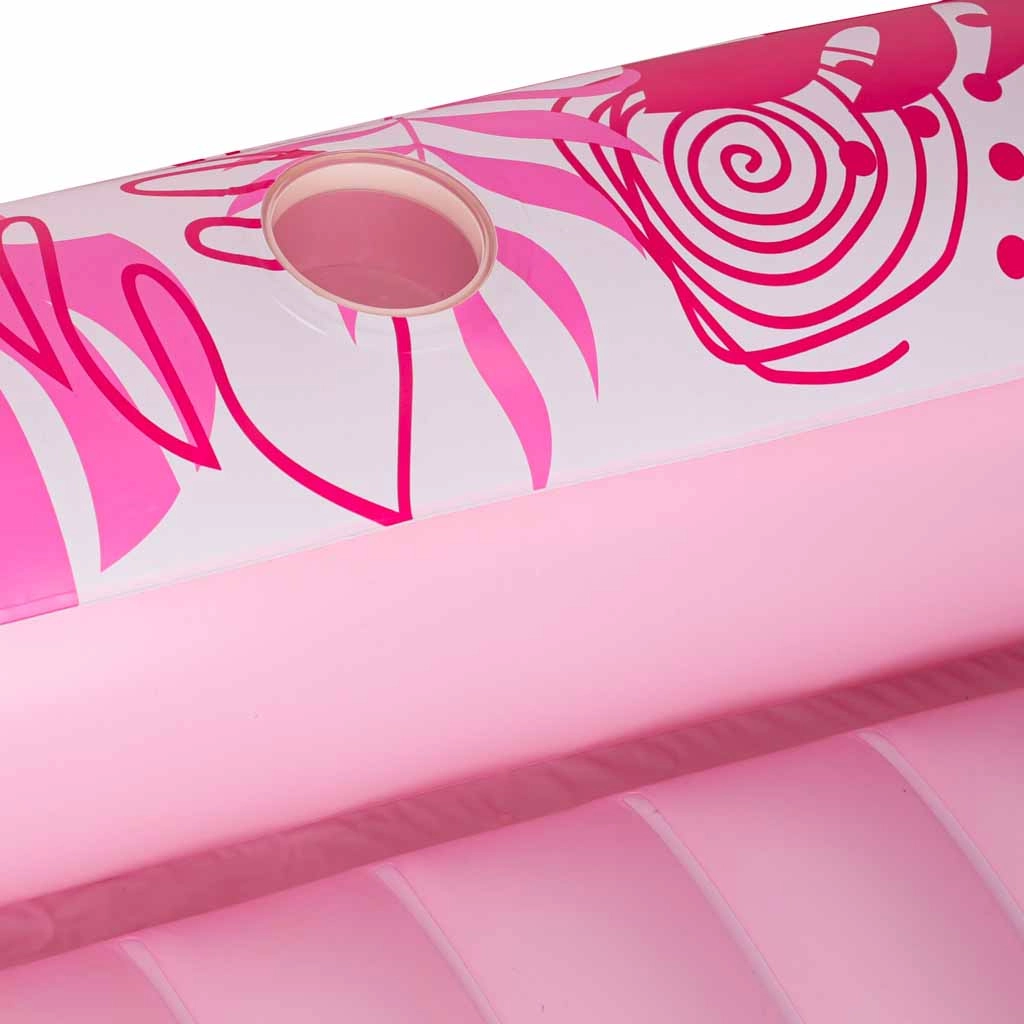 Două suporturi integrate pentru băuturi păstrează răcoritoarele mereu la îndemână, iar manipularea ușoară și portabilitatea o fac un partener de încredere pentru orice ieșire de vară. Designul roz-alb cu motiv tropical adaugă stil relaxării tale.