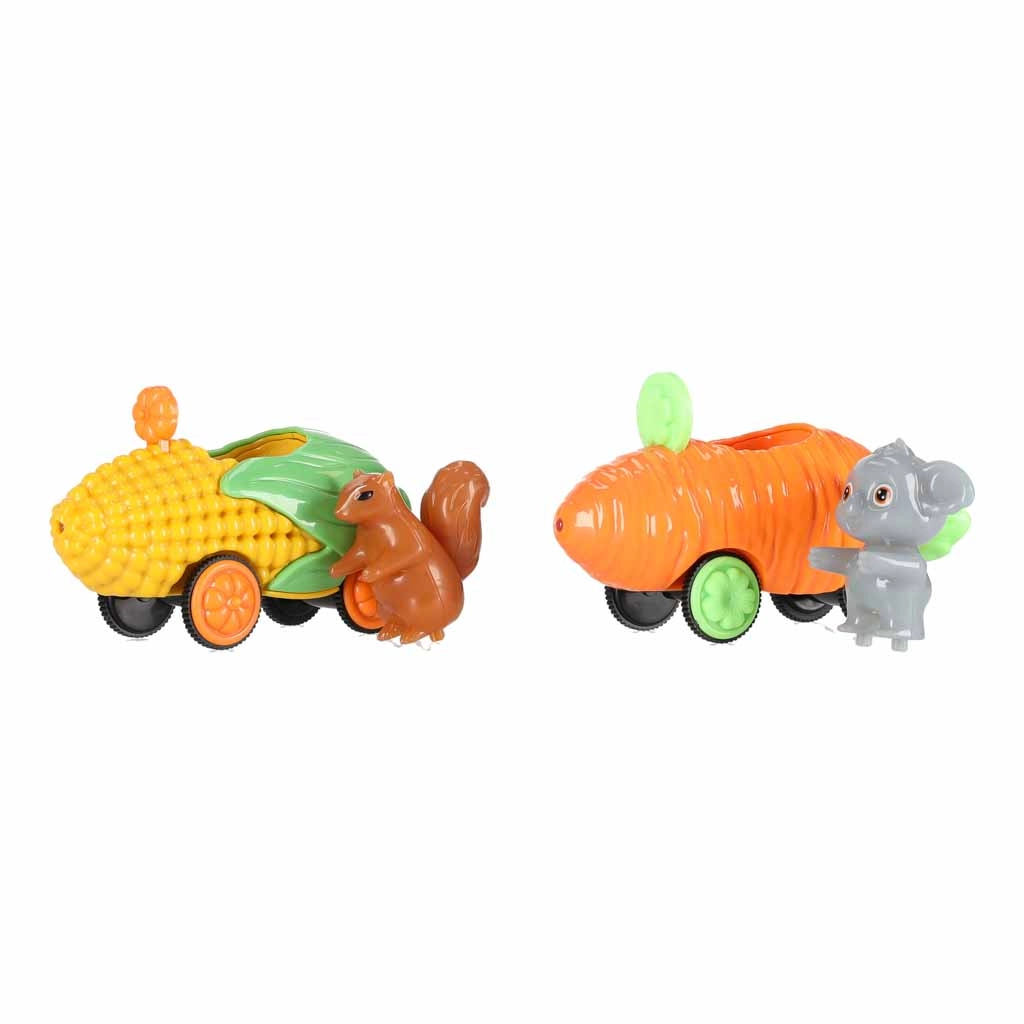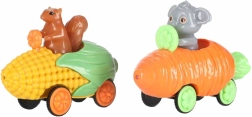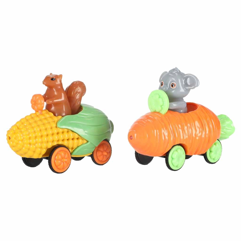Mașinuțele-morcov și porumb, cu koala și veveriță, se potrivesc perfect în mâna copilului și animează fiecare cursă.