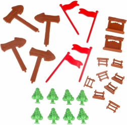 - Accesorii bogate: pod, stânci, garduri, steaguri, săgeți, flori, copaci