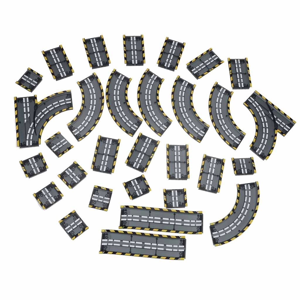 Drepte, curbe și intersecții – piesele modulare de drum cu conexiune magnetică permit construirea unor circuite stabile, iar și iar.