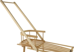 Sania din lemn cu spătar confortabil îmbină aspectul atemporal cu funcționalitatea. Construcția ușoară, dar robustă din lemn, asigură durabilitate și manevrare facilă. Patinele metalice de pe partea inferioară oferă alunecare lină pe zăpadă și o rezistență mai bună pe teren variat.