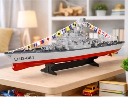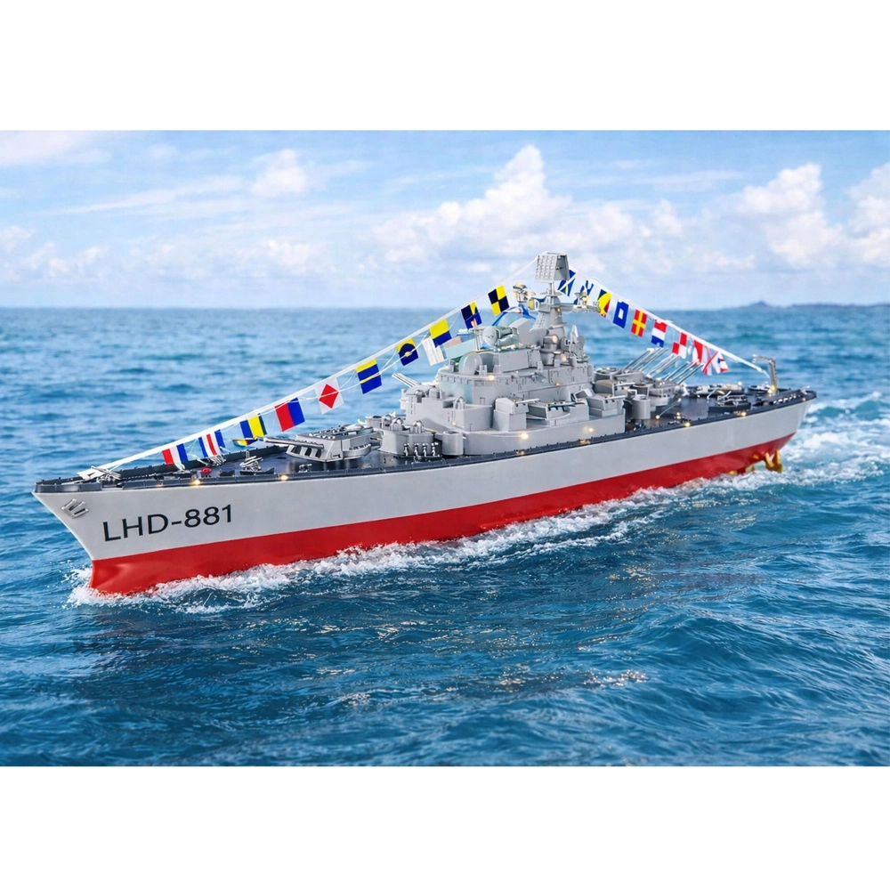Această navă RC detaliată reproduce fidel silueta unei ambarcațiuni militare moderne. Datorită propulsiei duble este stabilă, agilă și atinge viteze de până la 10 km/h. Telecomanda clară permite mers înainte/înapoi și viraje line stânga/dreapta, oferindu-vă siguranță și control deplin.
