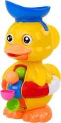 Rățușca interactivă pentru baie îi încântă pe copii cu culori vesele și un circuit ingenios al apei. E suficient să torni apă în pâlnia/pălăriuța de sus, iar copilul va urmări cum ochii se rotesc, ciocul se deschide și fluxul de apă pune în mișcare caruselul de pe burtică. Distracție care dezvoltă în mod natural simțurile, concentrarea și îndemânarea.