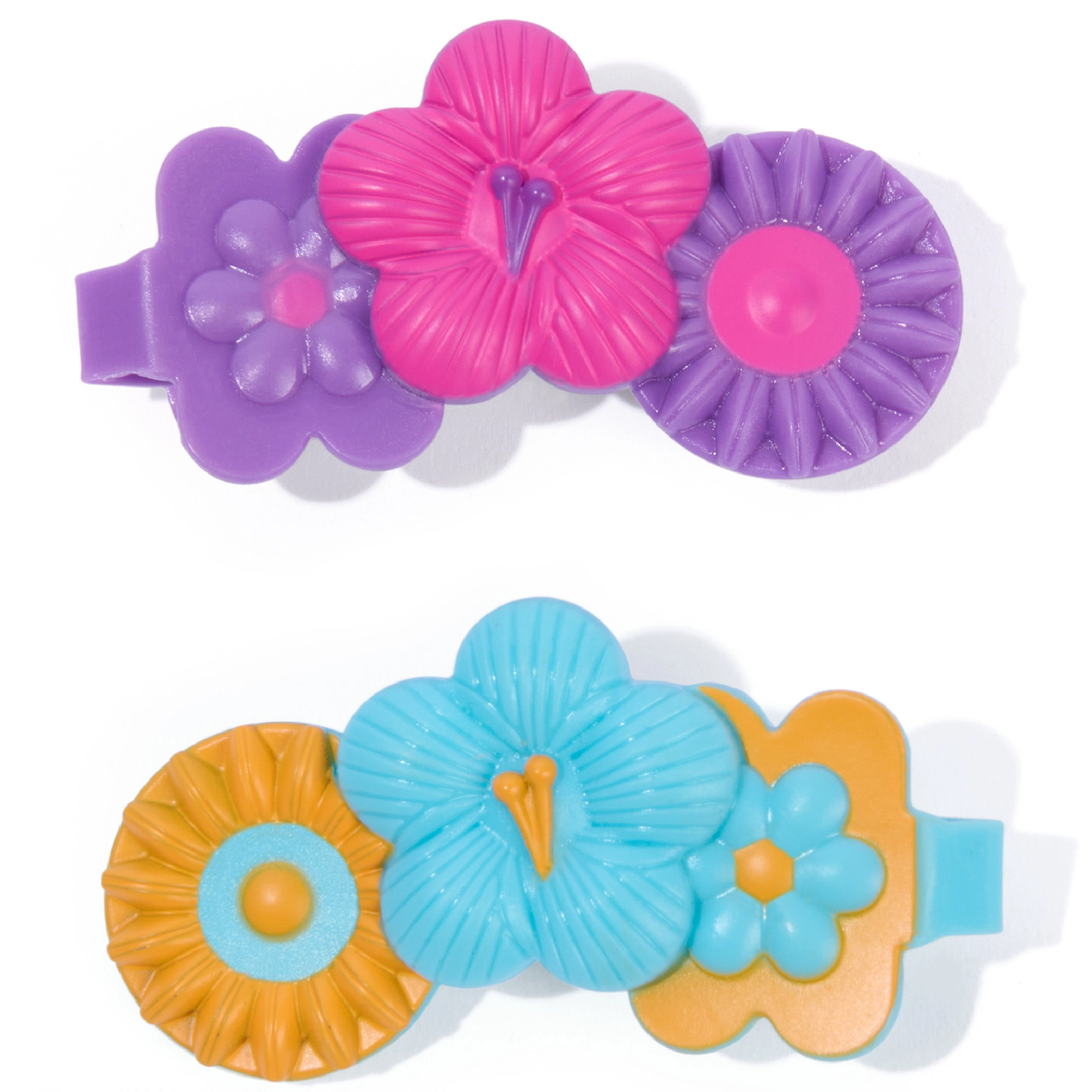Părul moale și des poate fi pieptănat și decorat cu agrafele florale incluse – ideal pentru coafuri creative și dezvoltarea motricității fine.