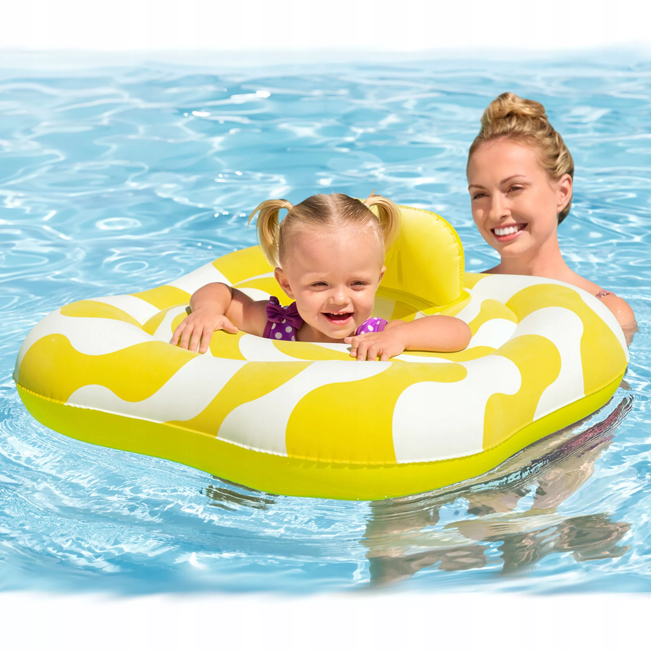 Bucurați-vă de joaca în apă fără griji cu micuțul înotător. Scaunul BESTWAY oferă o construcție pătrată stabilă, care ajută la menținerea echilibrului pe suprafața apei, și un șezut confortabil cu deschideri pentru picioare pentru a preveni răsturnarea. Spătarul gonflabil oferă sprijin spatelui și căpușorului copilului.