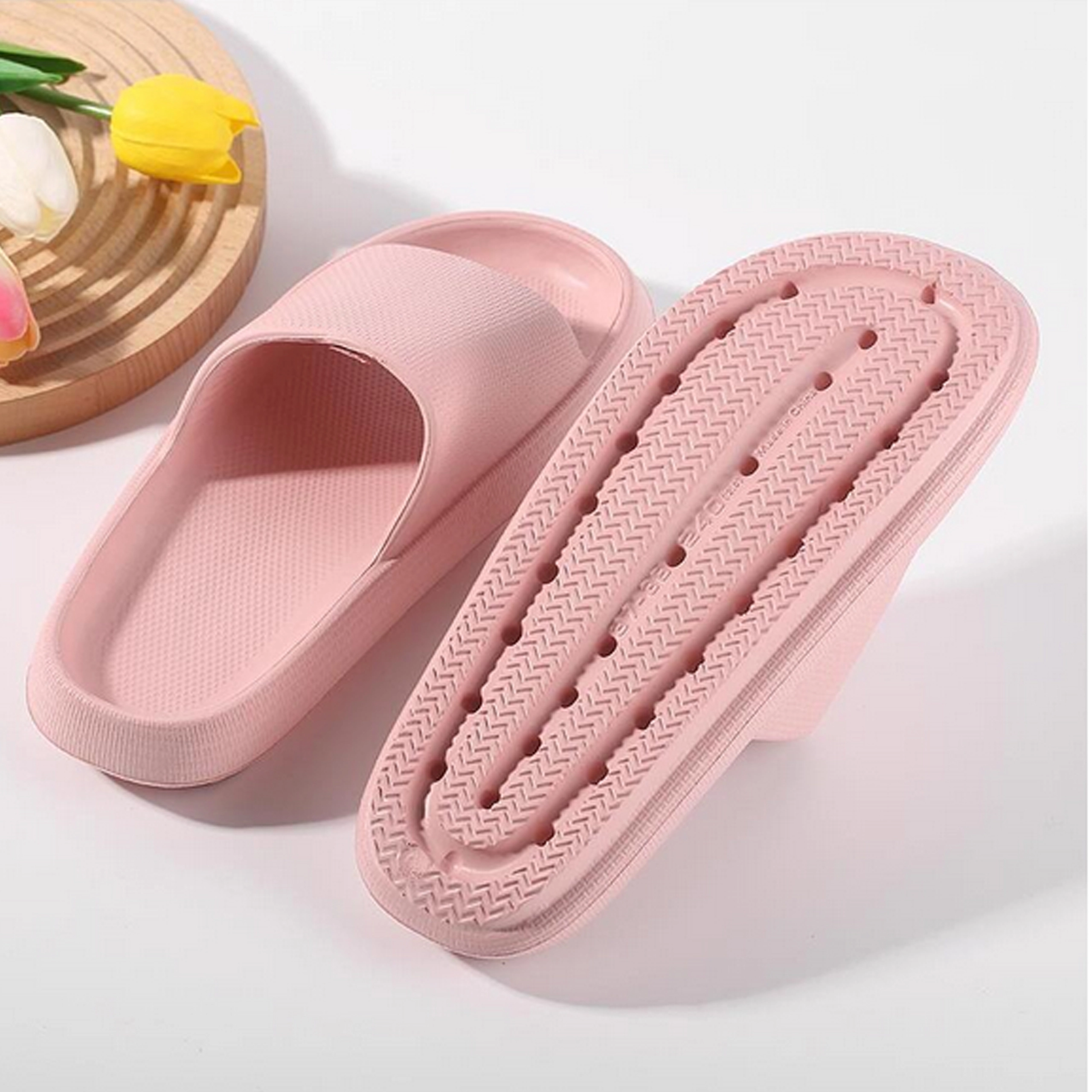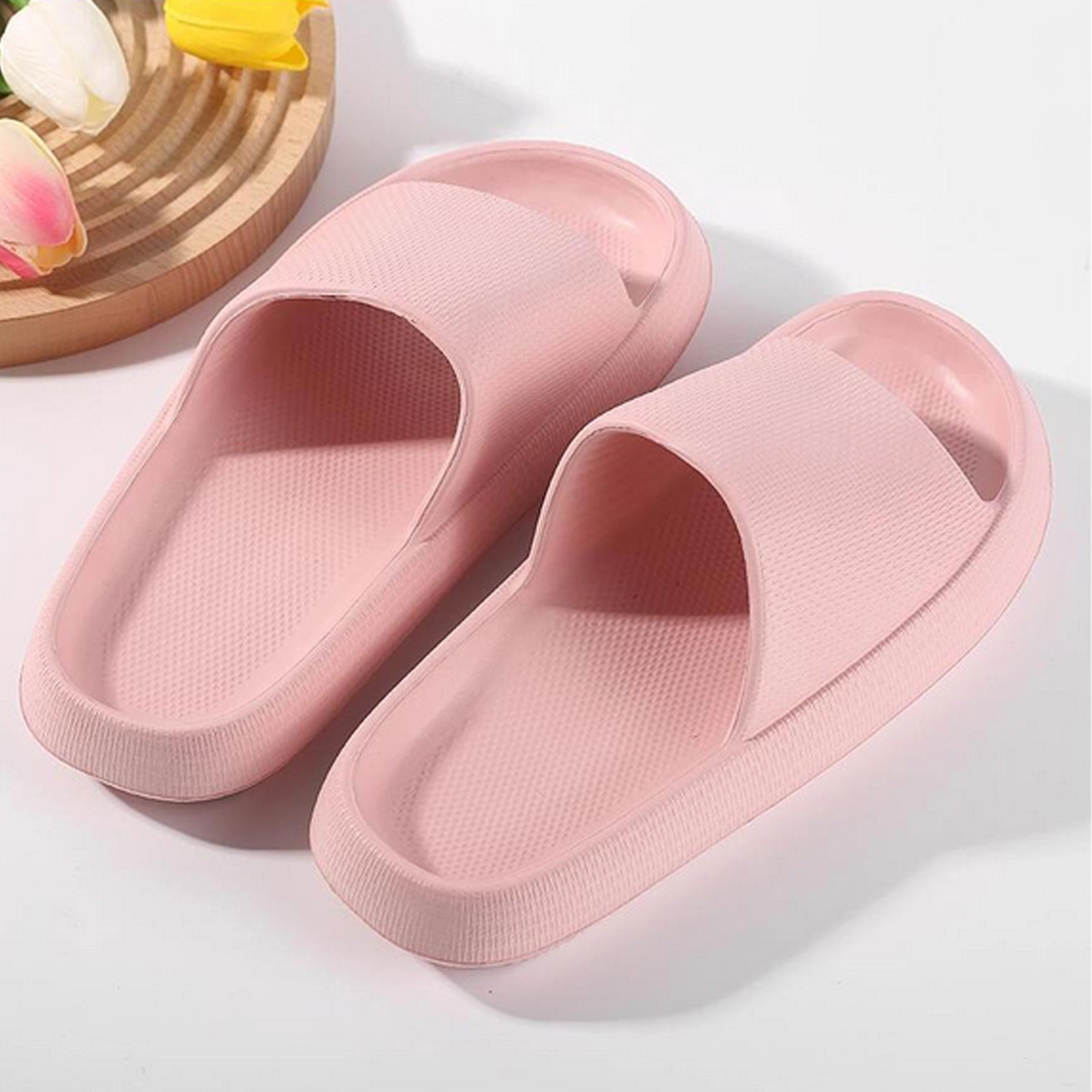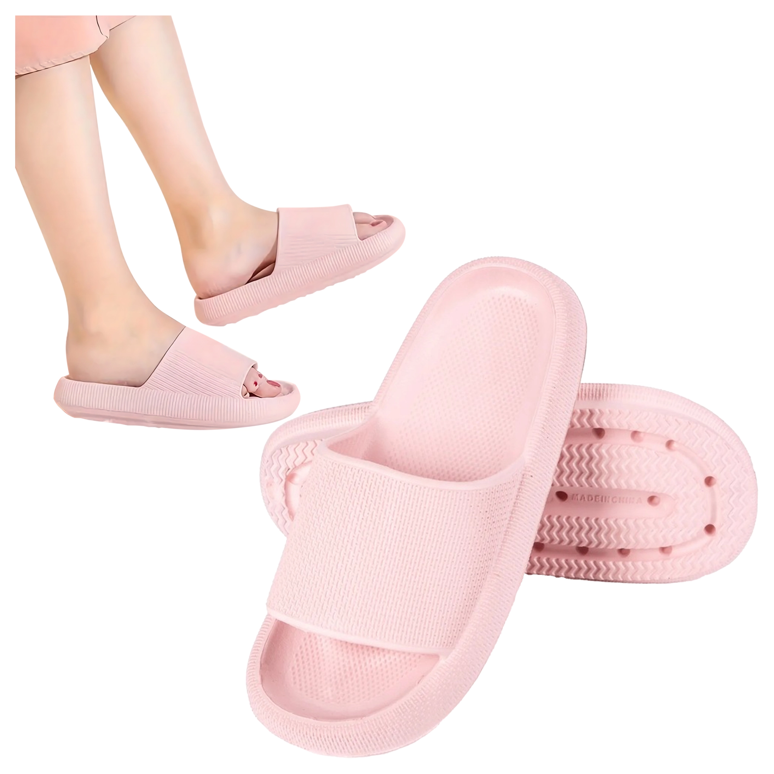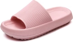 Bucurați-vă de confort la fiecare pas. Acești papuci de damă din spumă, cu talpă moale, groasă și bine amortizată și curea lată, oferă lejeritate, susținere și pași siguri pe suprafețe umede sau uscate. Sunt perfecți pentru piscină, plajă, duș și pentru acasă.