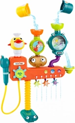 Această jucărie acvatică colorată pentru baie stimulează curiozitatea și motricitatea fină. Copilul, cu ajutorul cănuțelor, toarnă apă în pâlnii, punând astfel în funcțiune morițele rotative și stropirea apei. Curgea spectaculoasă ajută la înțelegerea principiului cauză–efect și face mai plăcută igiena zilnică.