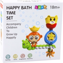 Turnați apă în căpăcelul maimuței și urmăriți cum se rotesc ochii, se deschide gurița, iar apa pune în mișcare steluța și rotița de jos. O motivație grozavă pentru o baie plină de bucurie.