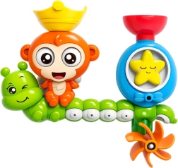Această jucărie acvatică interactivă transformă spălatul obișnuit într-un ritual plin de bucurie. După ce turnați apă din pahar în căpăcelul maimuței, se rotesc ochii, se deschide gurița, iar apa curge peste omiduță și steluță în jos spre roata cu apă, care începe să se învârtă. Copiii descoperă astfel relații simple de cauză și efect și învață prin joacă.