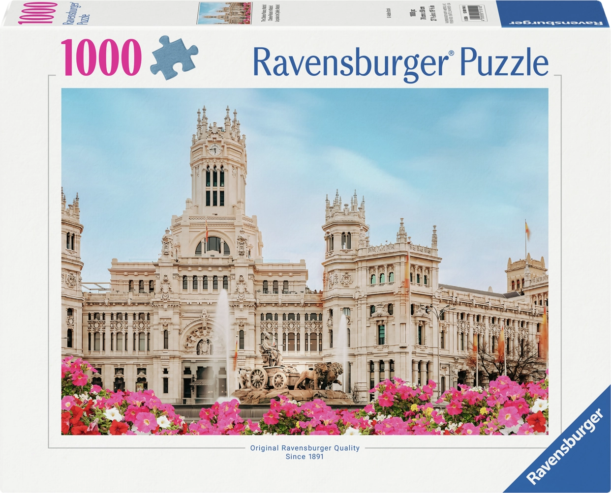 Descoperă farmecul Madridului cu puzzle-ul de calitate RAVENSBURGER. Puzzle-ul cu motivul iconic al Palatului Cibeles oferă 1000 de piese care se îmbină perfect, iar după asamblare creează o imagine de 70 × 50 cm. Ideal pentru relaxare, antrenarea concentrării și bucuria unei lucrări finalizate.