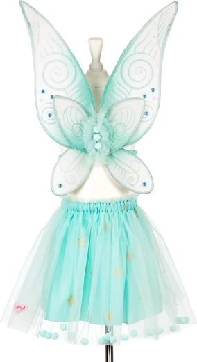 Setul include și aripi de elfă cu modele sclipitoare în nuanță de mentă albastră și cristale albastre. Datorită bretelelor elastice, sunt confortabile la purtare și pot fi folosite și separat pentru alte deghizări. Costumul este ideal pentru carnaval, petreceri tematice, ședințe foto și joacă fantezistă acasă.