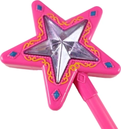Această baghetă elegantă este accesoriul ideal pentru toate iubitoarele de povești, costume și carnavaluri. Printr-o singură mișcare pornește efecte luminoase colorate și acompaniamente sonore plăcute, care stimulează imaginația și jocul creativ.