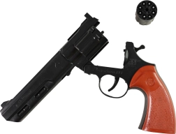 Acest pistol din plastic pentru capse este ideal pentru jocuri de rol, westernuri și scene de acțiune. Datorită încărcătorului pentru 8 focuri, oferă un joc dinamic cu efect sonor realist al capselo