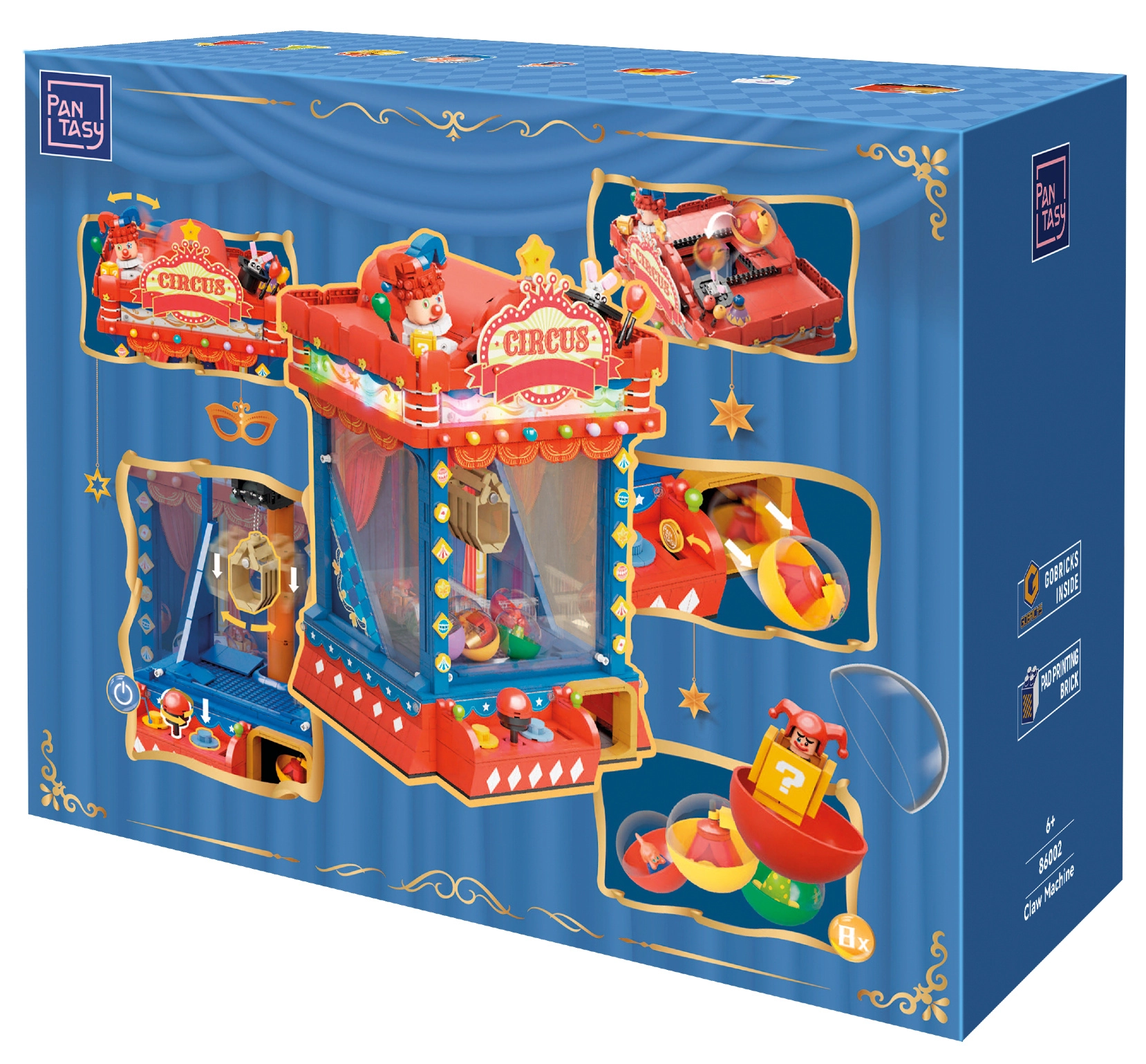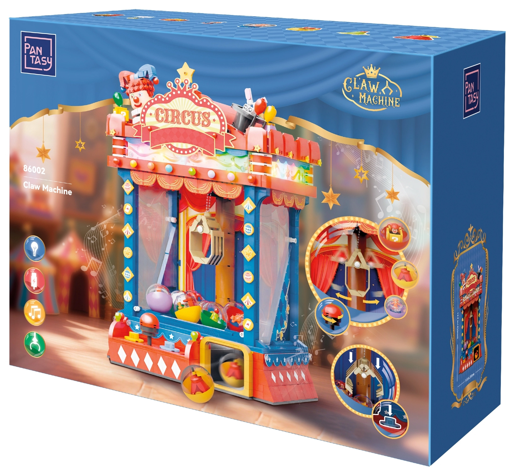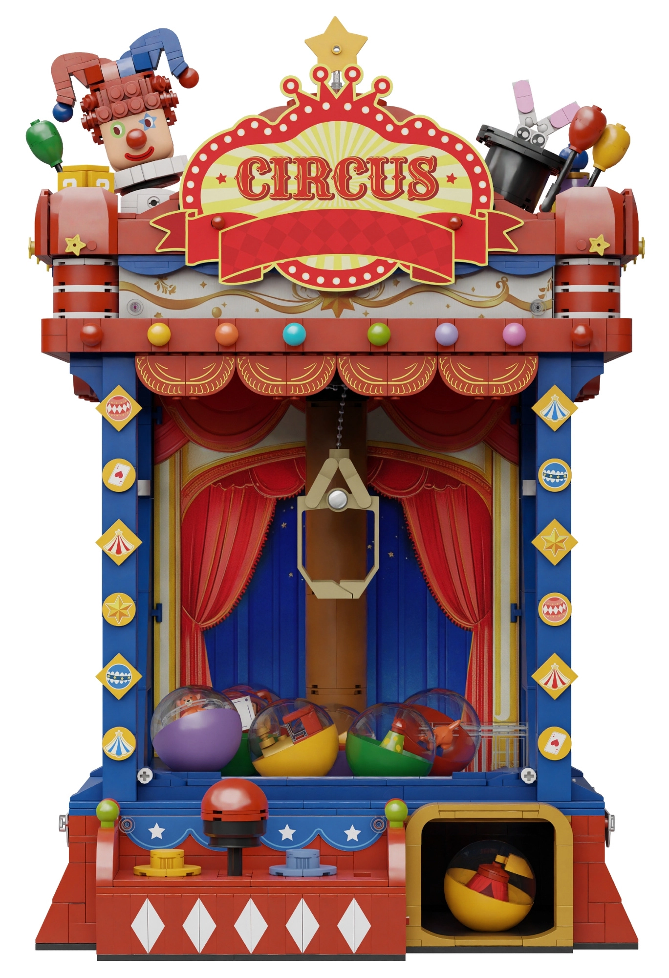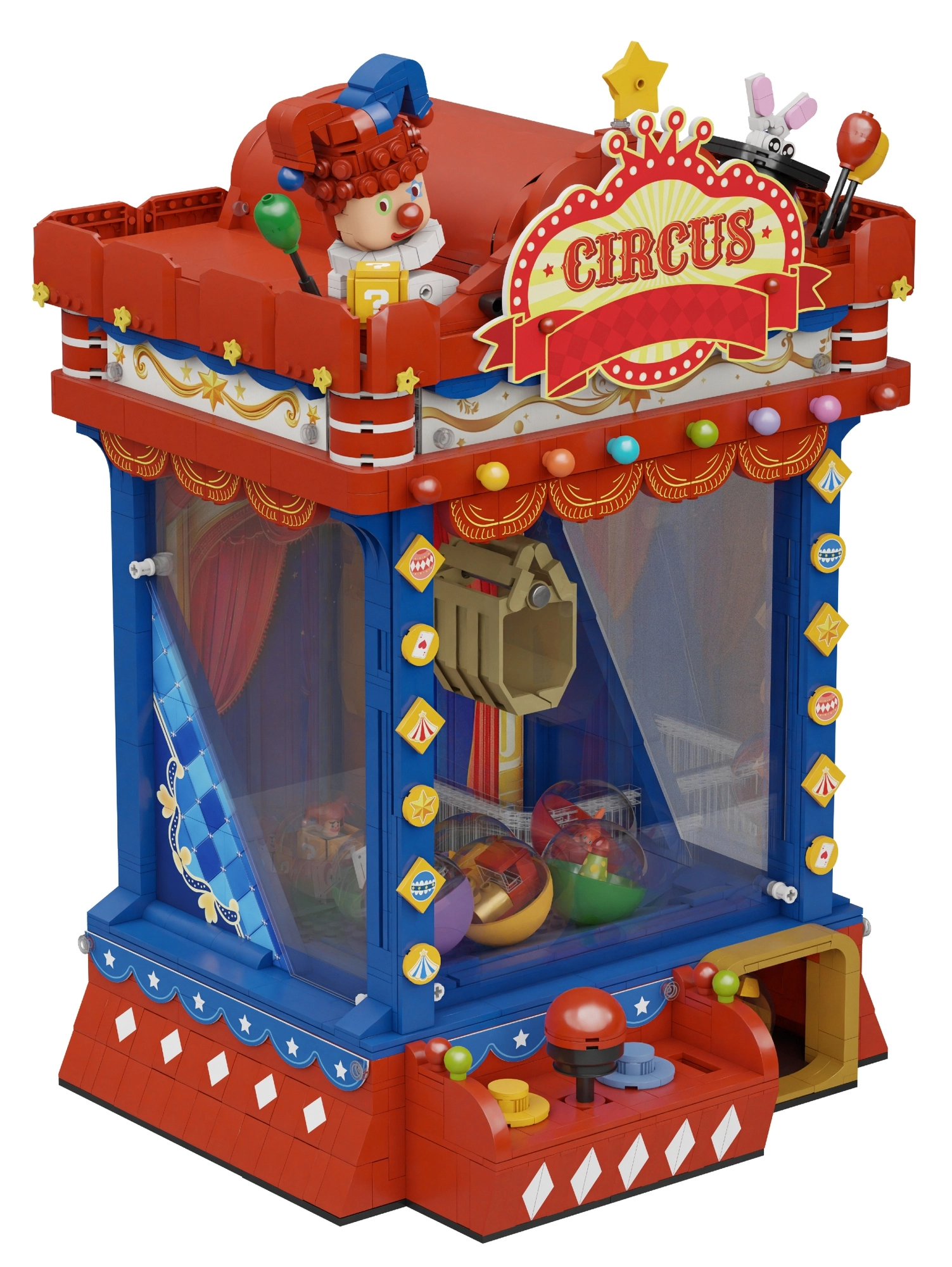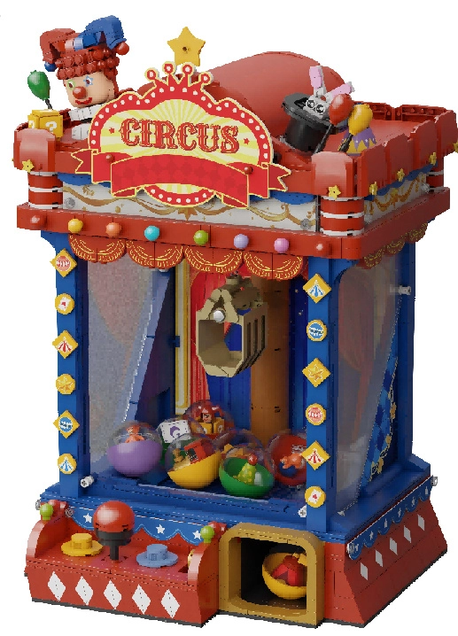 Inspirat de atmosfera vechilor circuri și a sălilor de jocuri din anii ’80 și ’90, modelul se remarcă prin aspectul vintage și detaliile ingenioase. După asamblare, funcționează cu adevărat ca un automat – cu ajutorul joystick‑ului miști gheara, o cobori și încerci să prinzi capsule colorate cu surprize. Lumini LED și modulul sonor amplifică experiența autentică de joc.