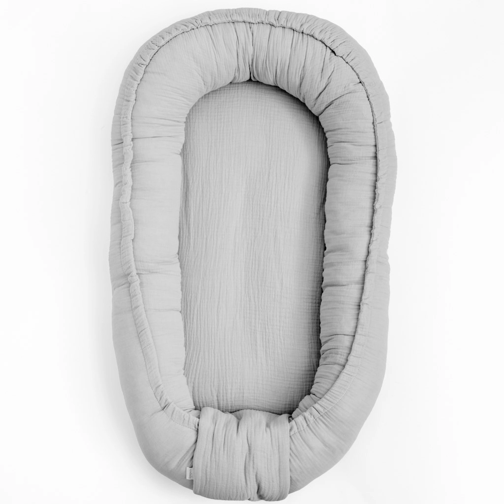 Cuibul din muselină New Baby, în culoarea gri deschis, oferă bebelușului un loc confortabil și sigur pentru odihnă acasă și în călătorii. Datorită materialului moale din bumbac, cuibul este blând cu pielea copilului, antialergic și ușor de transportat. Potrivit pentru copii de la 0 la 12 luni.