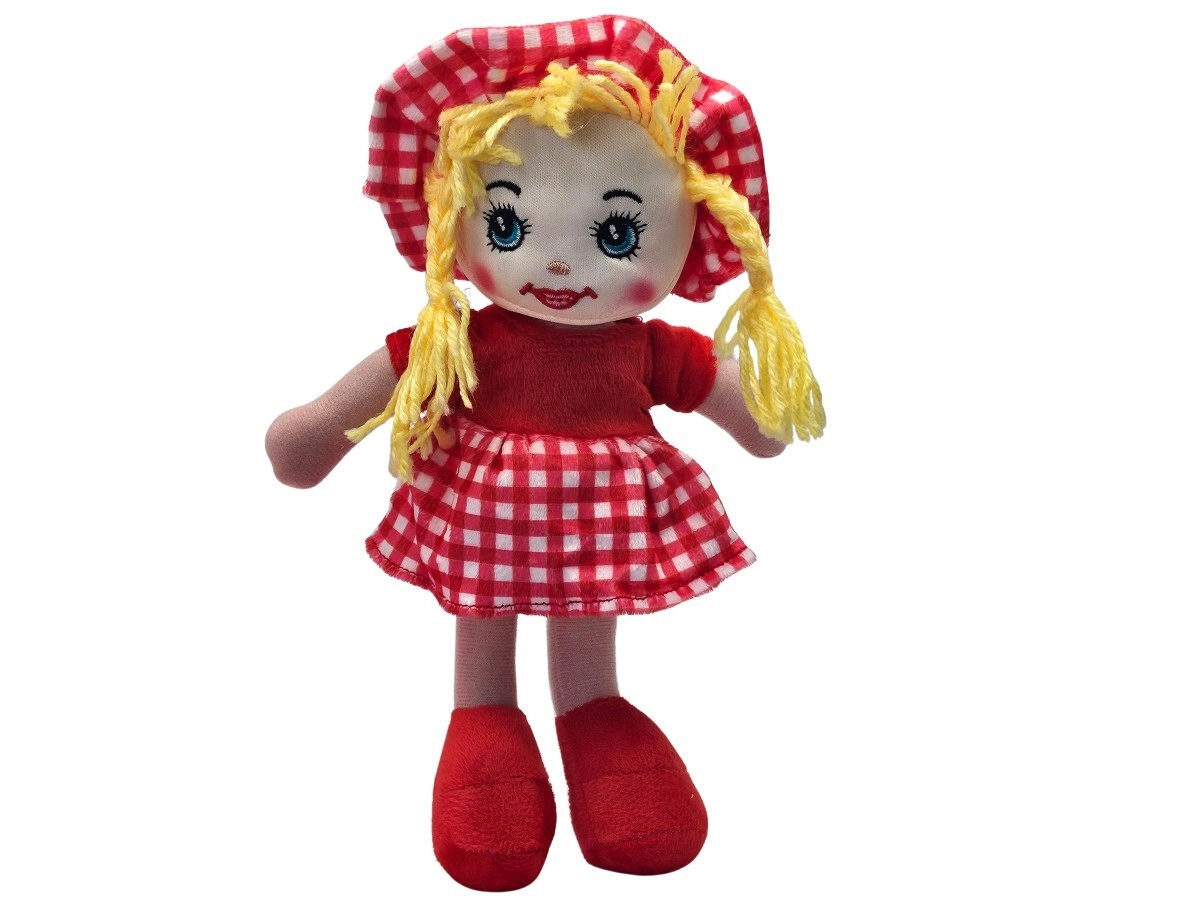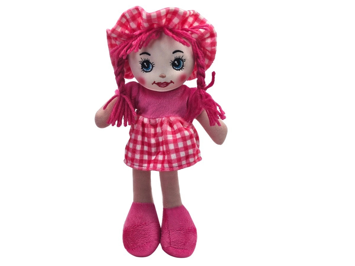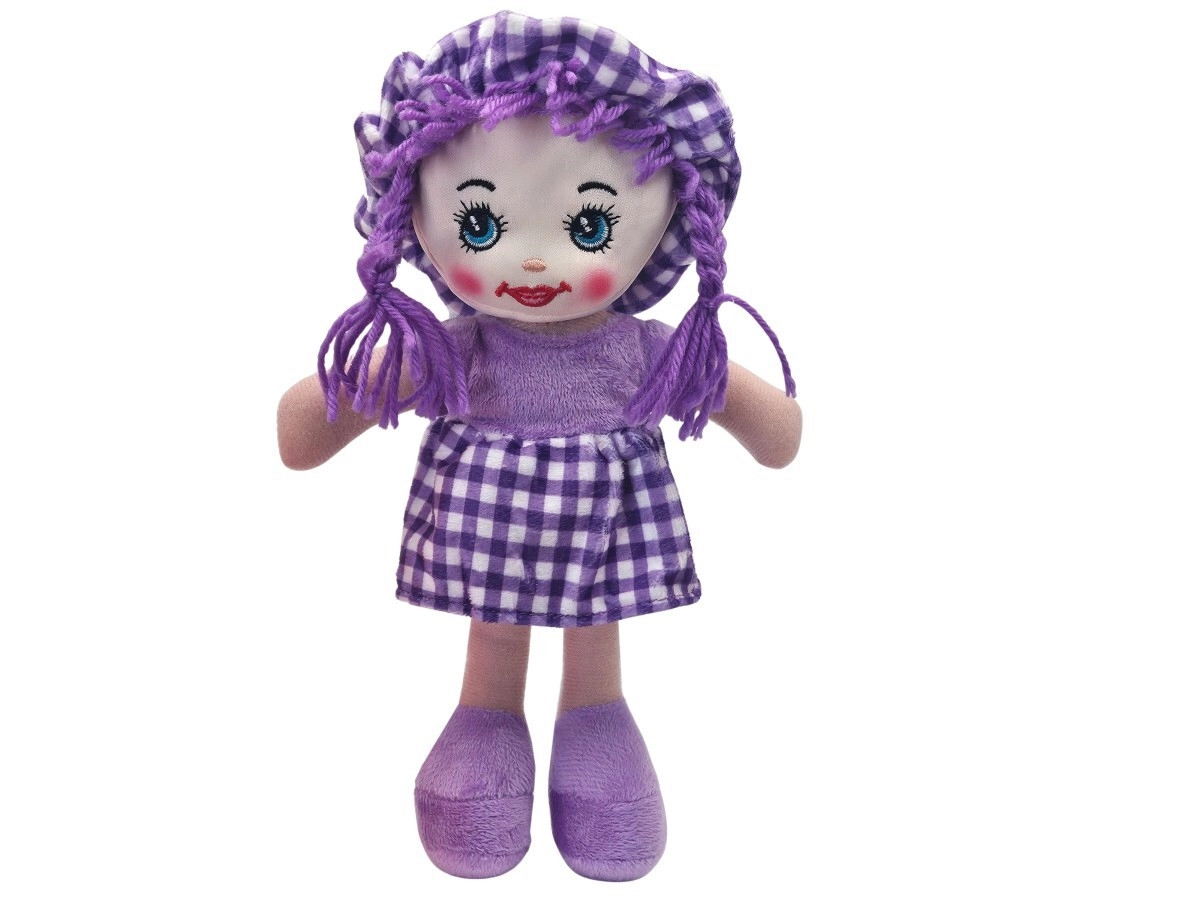Păpușa de pânză Julka este pufoasă și ușoară, așa că se ține perfect chiar și de copiii mai mici. Datorită ochilor și gurii brodate, joaca este sigură și fără piese mici. Păpușa poartă o rochiță stilată în carouri cu căciuliță asortată și are părul împletit din șnur.