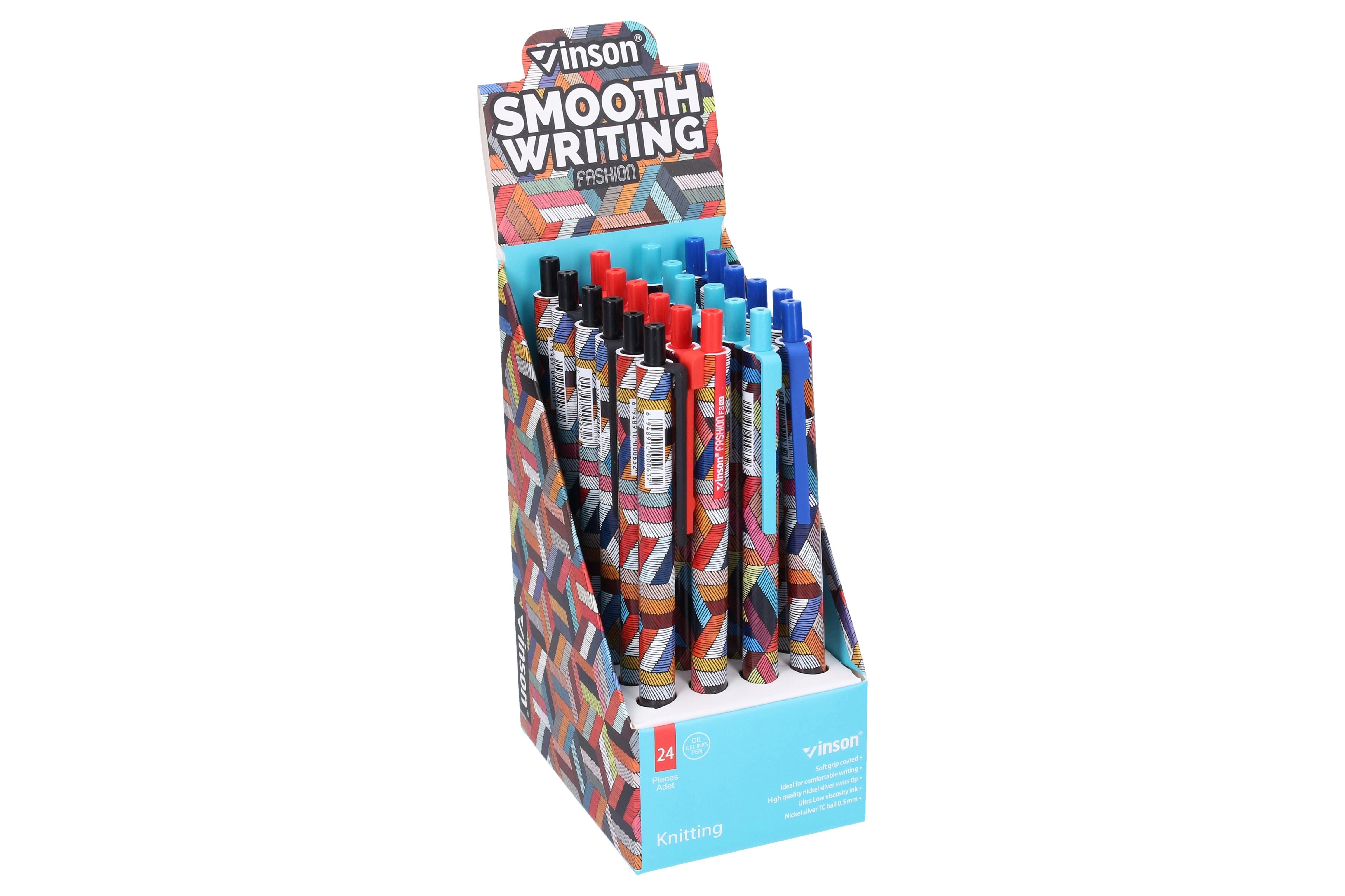 Poți alege dintre 4 variante de culoare ale capacului – negru, roșu, albastru deschis și albastru – pentru a-ți potrivi pixul cu stilul sau organizarea ta. Ambalat câte 24 de bucăți în display box, potrivit pentru magazine, birouri și școli.