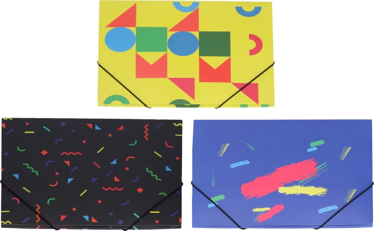 Practic dosar cu elastic cu dimensiunile 31,4 × 23,5 cm care păstrează documentele în siguranță laolaltă. Disponibil într-un mix de culori, ideal pentru școală, birou și călătorii.