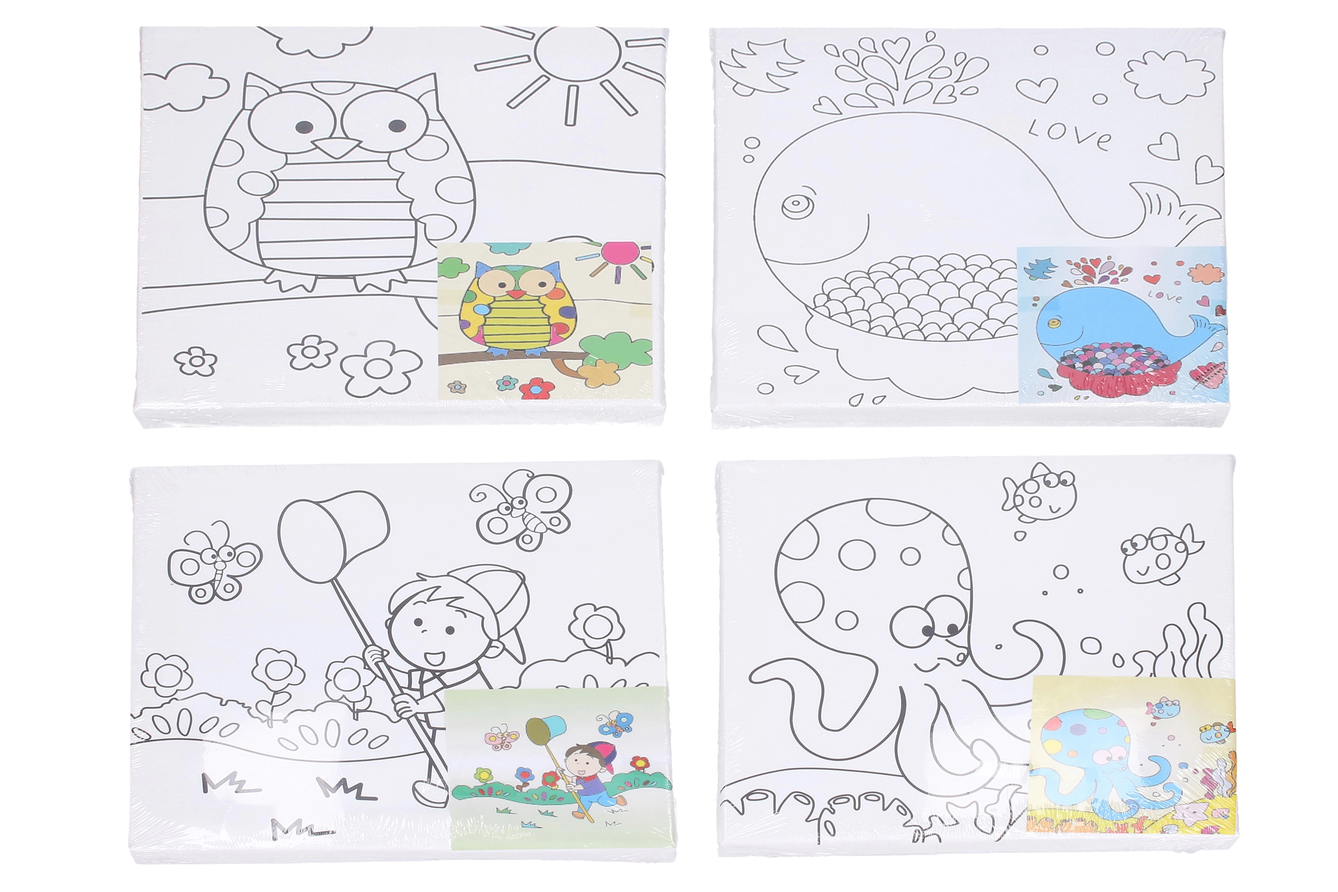 Acest set de pictură pentru copii oferă tot ce au nevoie micii artiști: pânze cu motive imprimate, un set de culori acrilice de bază și o pensulă de calitate. Șabloanele cu contururi clare facilitează pictura, ajută la construirea încrederii și îi motivează pe copii să finalizeze propria lucrare colorată.