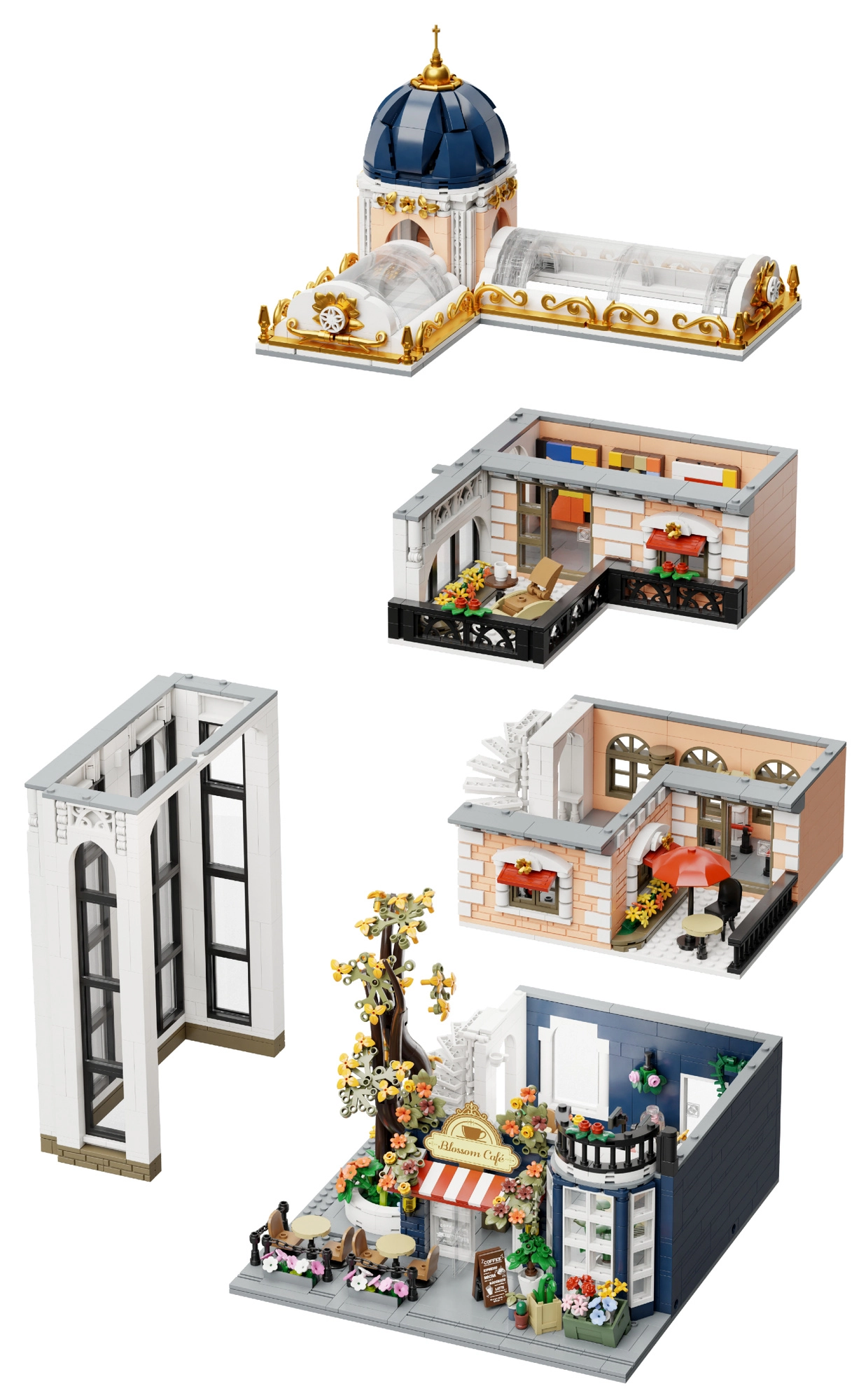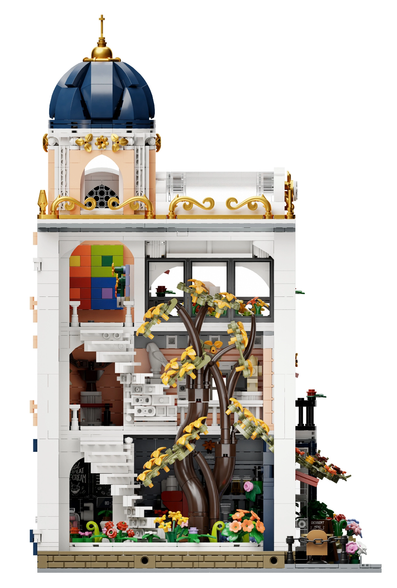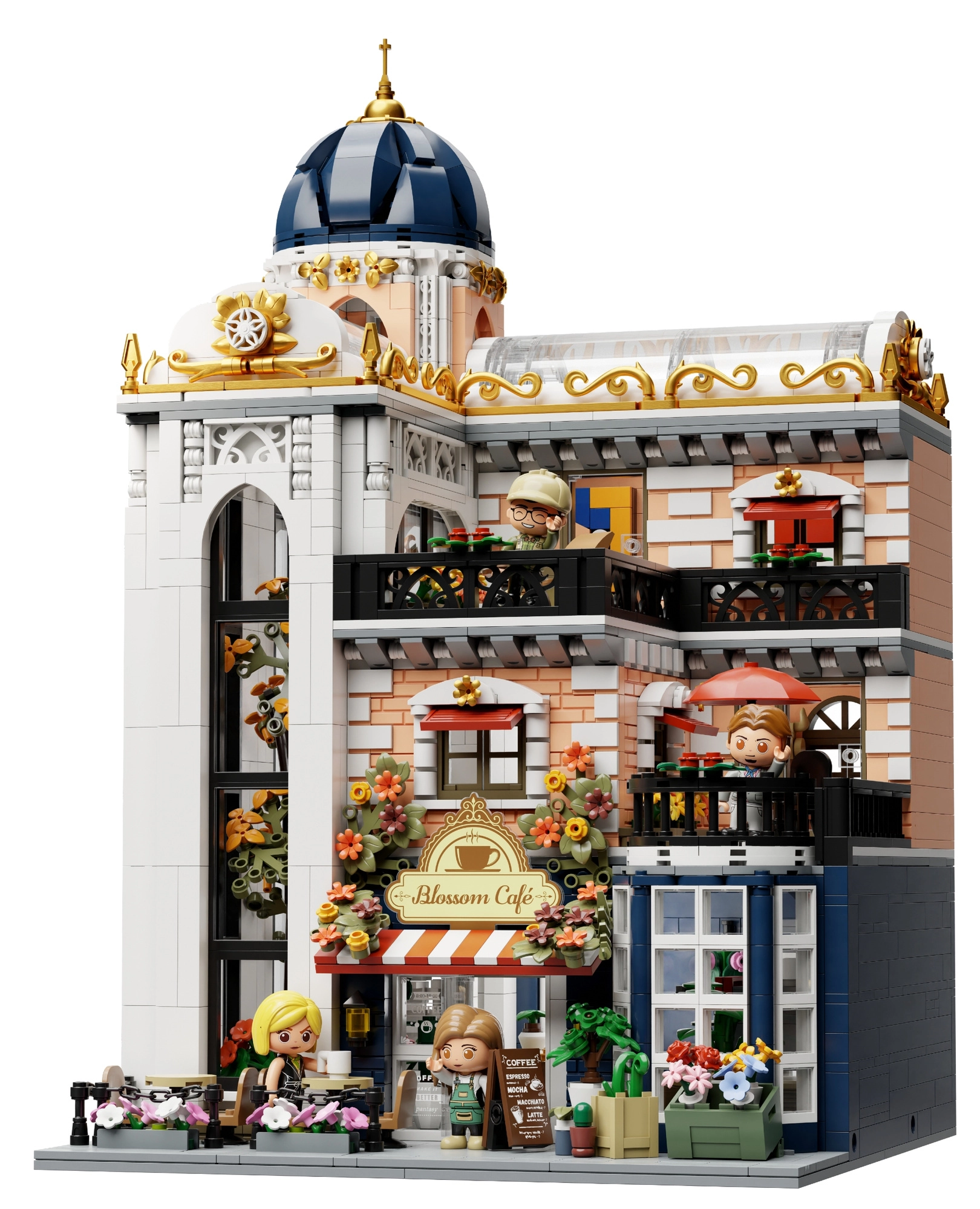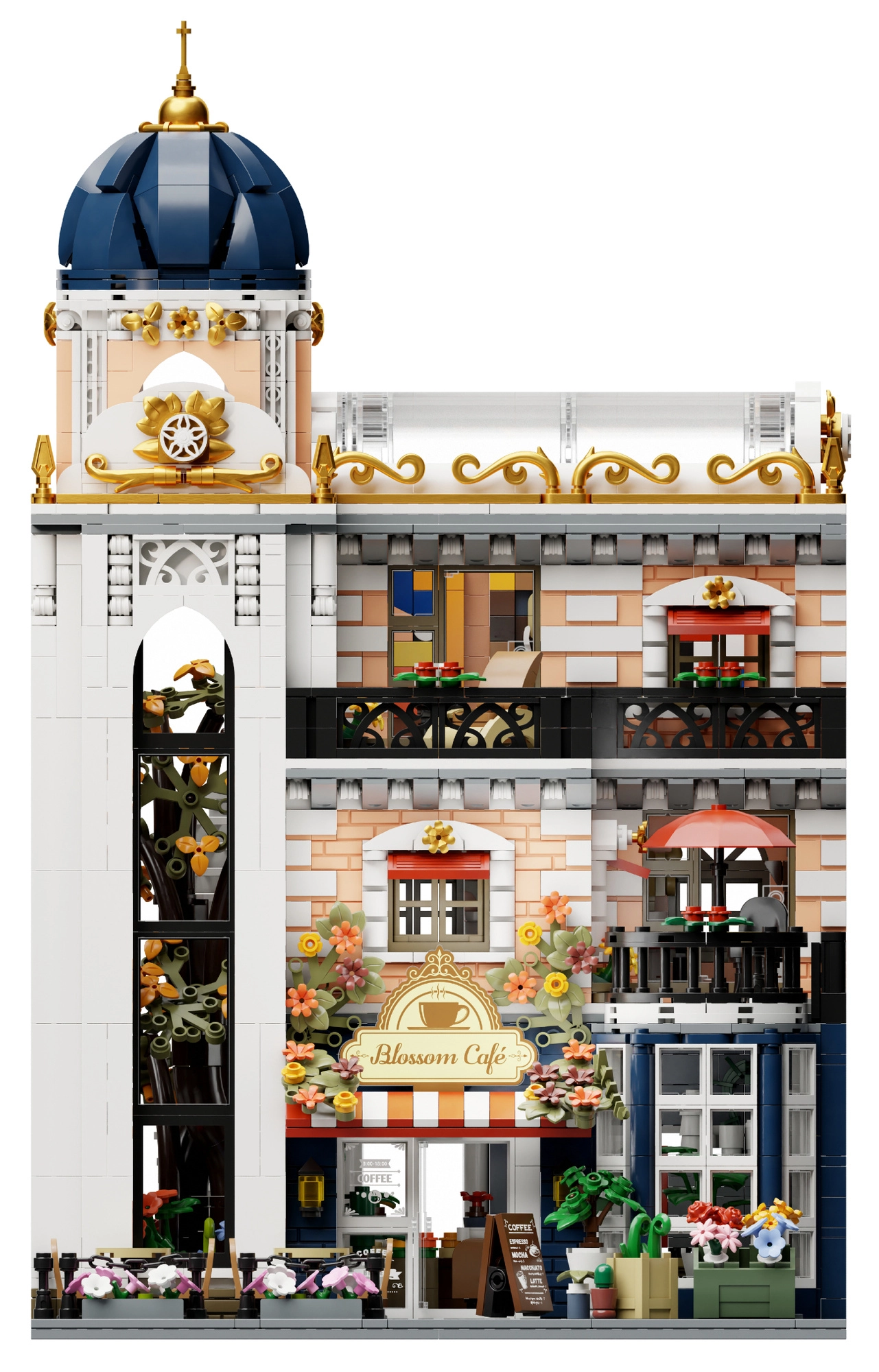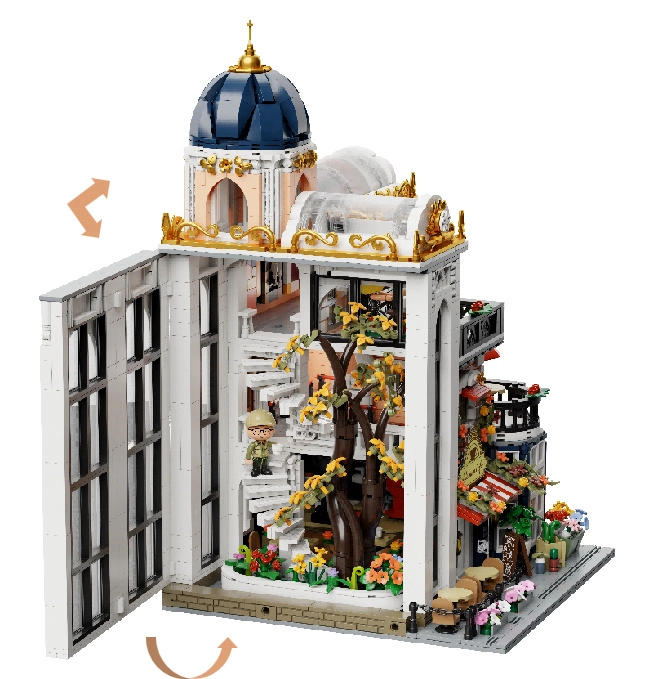 Descoperă setul de construcție elegant PANTASY Blossom Café – o clădire modulară pe trei niveluri cu o cupolă arcuită impresionantă, un atriu cu flori și interioare detaliate. Datorită modulilor rabatabili, ai acces ușor la fiecare etaj, te bucuri de construcție creativă, expunerea modelului și scene de joacă cu minifigurine.