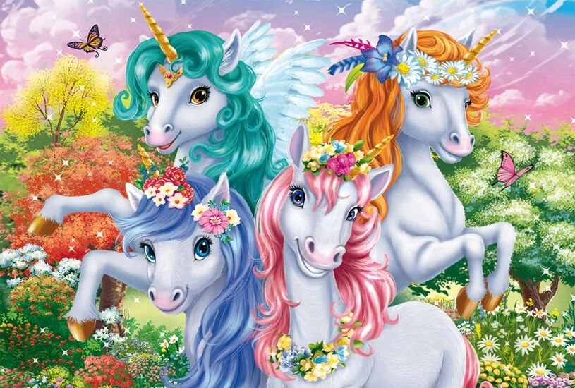 O lume magică a fanteziei pentru mici și mari! Puzzle-ul Schmidt cu motivul unicorni oferă 100 de piese pentru asamblare distractivă și dezvoltarea motricității fine. Ideal pentru copiii care adoră ilustrațiile colorate și vor să exerseze răbdarea și concentrarea.