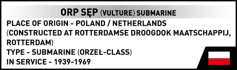 ORP Sęp din gama COBI Historical Collection este un model de colecție detaliat al submarinului polonez din clasa Orzeł. Datorită dimensiunilor compacte și pieselor atent colorate, iese în evidență atât pe raft, cât și în vitrină. Setul a fost realizat în colaborare cu Muzeul Marinei din Gdynia și îmbină istoria captivantă cu execuția precisă.