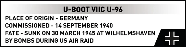 Modelul amintește de celebrul submarin U-96, cunoscut din carte și filmul DAS BOOT – o îmbinare a istoriei cu cultura pop în colecția dvs.