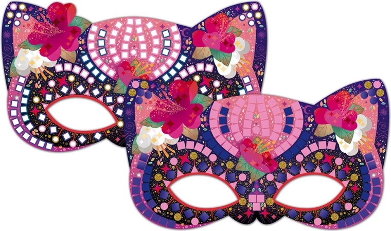 Lăsați-i pe copii să devină supererou, zână sau pisică și să-și dezvolte imaginația creând propriile măști. Setul oferă o activitate simplă și distractivă datorită mozaicului din spumă autoadezivă, astfel că nu este nevoie de lipici sau foarfece. Măștile finite se adaptează ușor pe față cu ajutorul benzilor elastice.