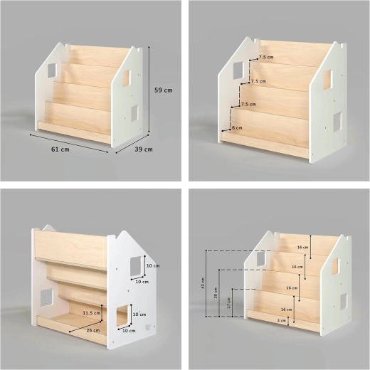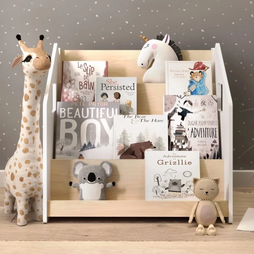 Suportul pentru cărți BusyKids este conceput pentru a le permite copiilor să vadă clar copertele și să aleagă sau să pună singuri cărțile la loc. Datorită aspectului curat, atemporal, se potrivește de minune în camera copilului, camera de joacă sau living. Rafturile frontale păstrează titlurile preferate la îndemână, în timp ce spațiul de depozitare din spate găzduiește cărți sau jucării suplimentare.